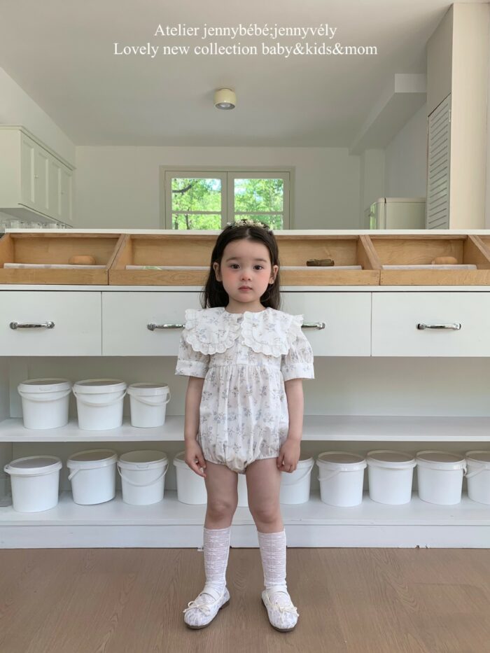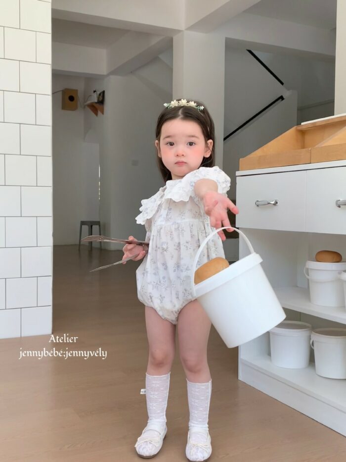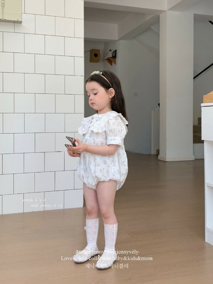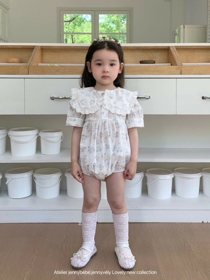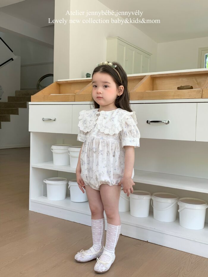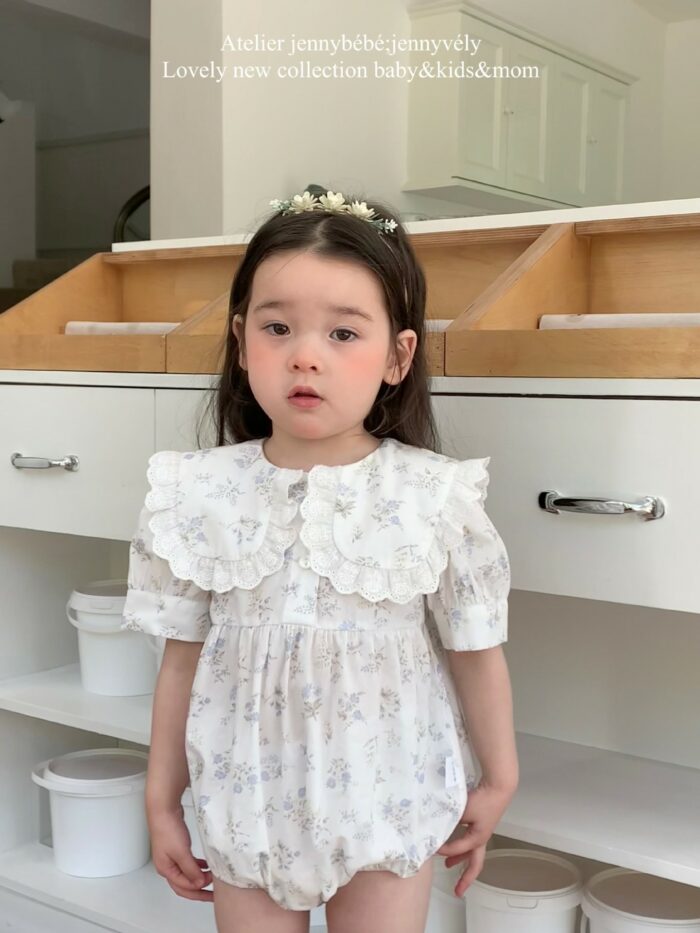 韓版夏季66~90cm – 蕾絲領片碎花包屁衣