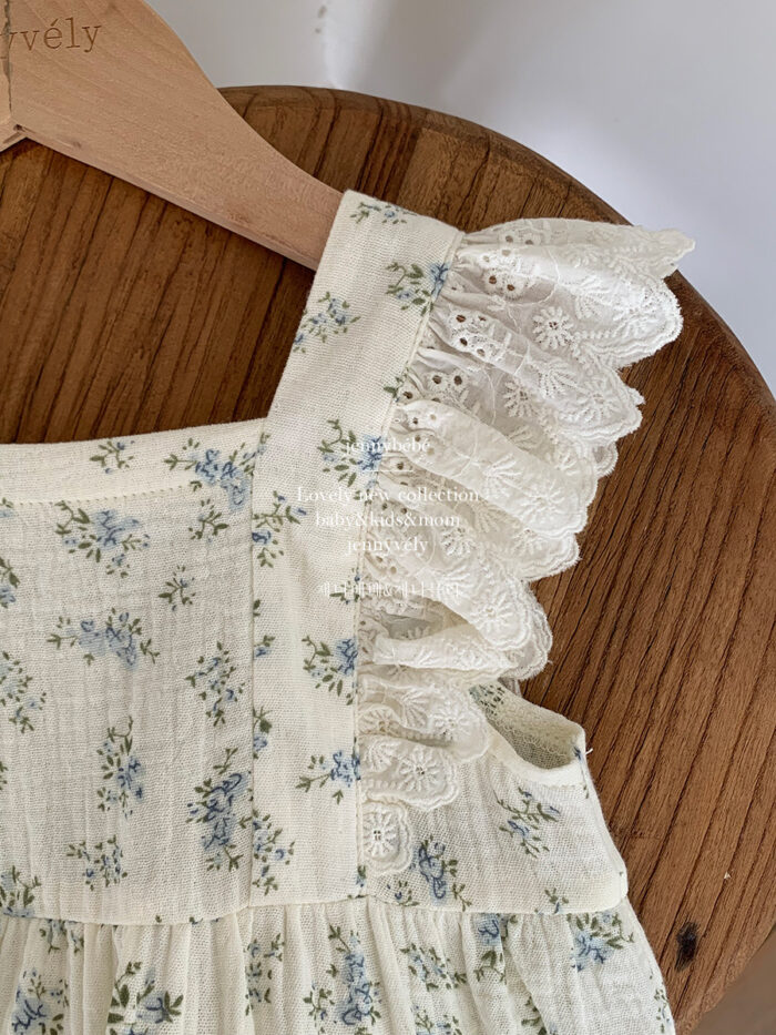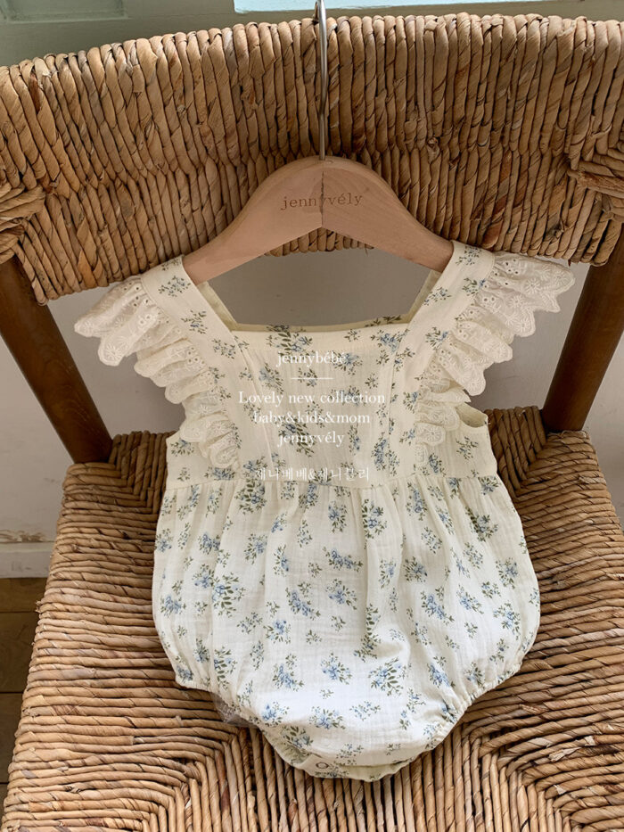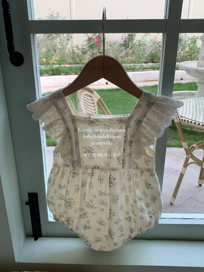 韓版夏季66~90cm – 蕾絲飛翼碎花包屁衣