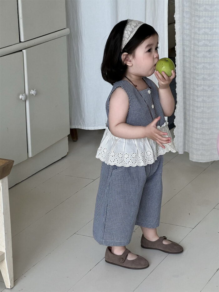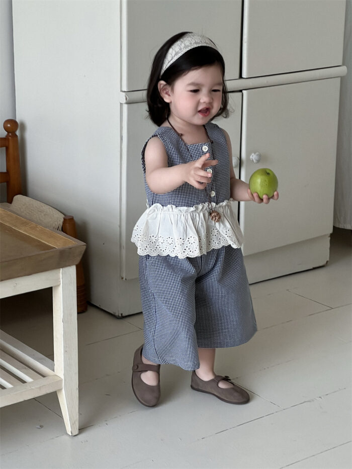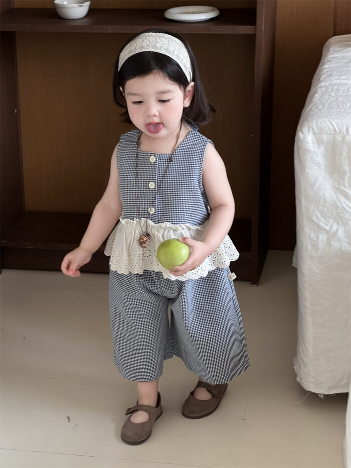 韓版夏季73~100cm – 格子蕾絲背心套裝