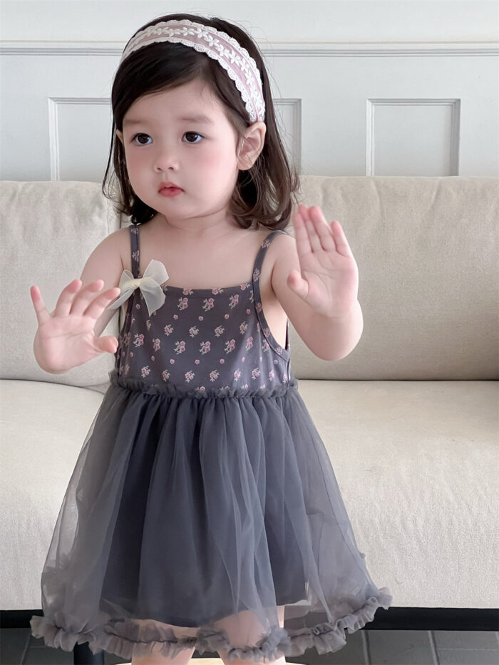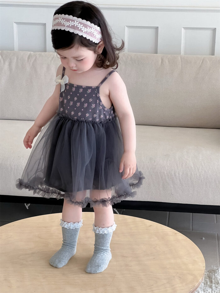 韓版夏季73~100cm – 碎花拼接網紗裙