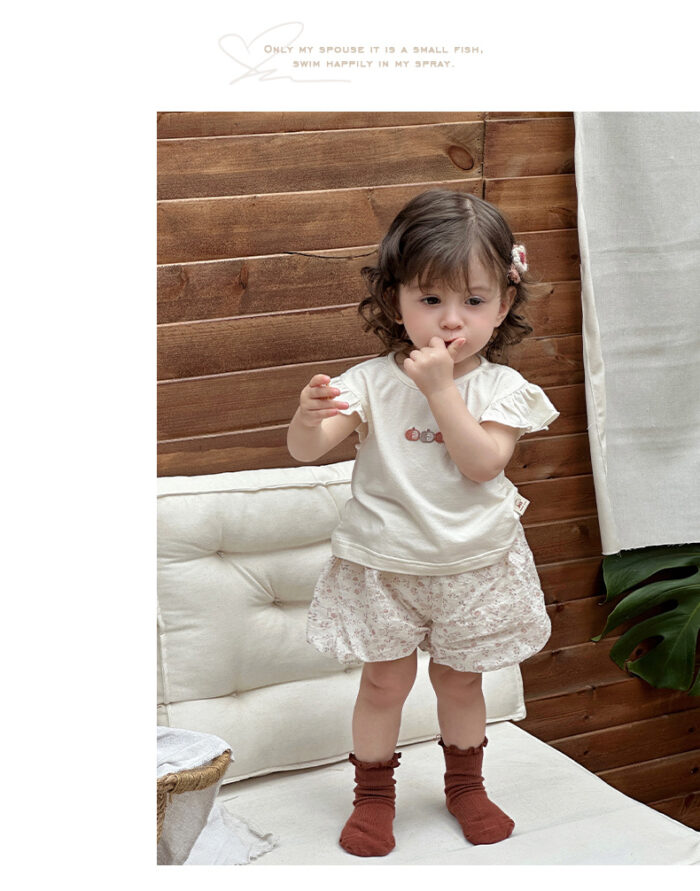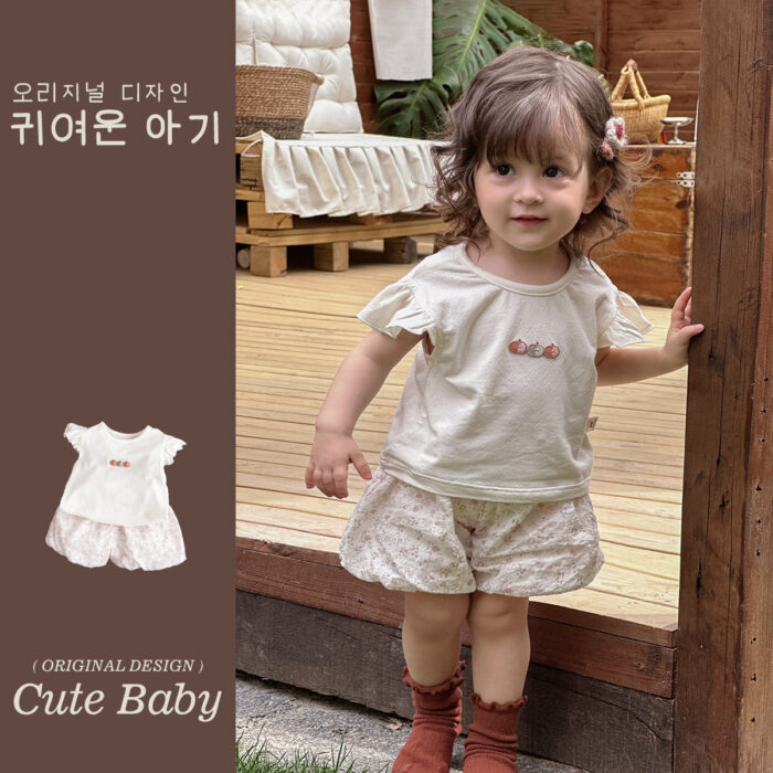 韓版夏季73~100cm – 碎花蘋果套裝(上衣+下褲)