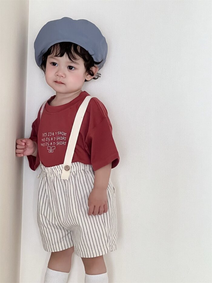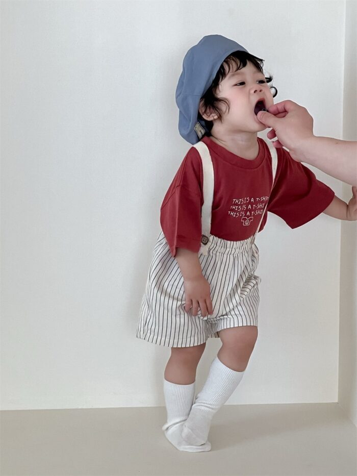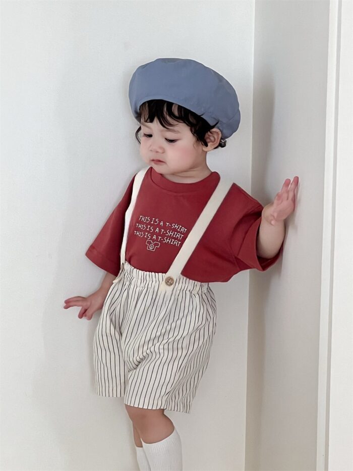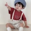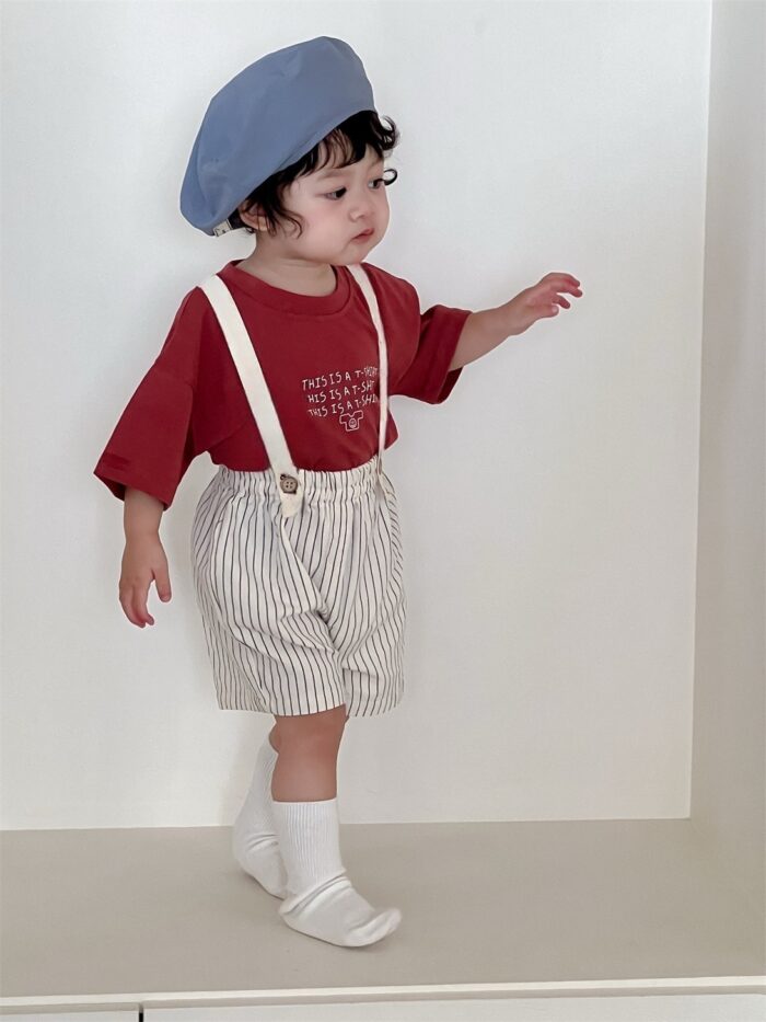 韓版夏季73~100cm – 紅色上衣+吊帶褲套裝