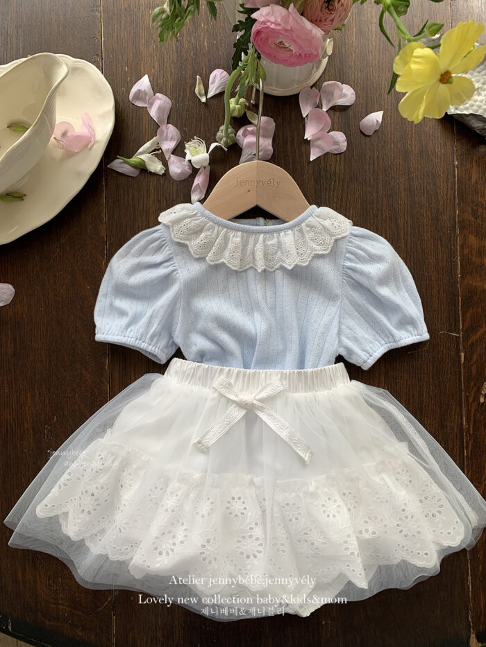 韓版夏季73~100cm – 蕾絲上衣+紗紗裙套裝