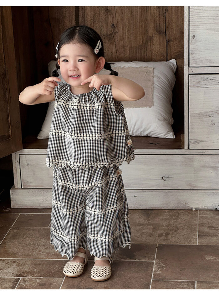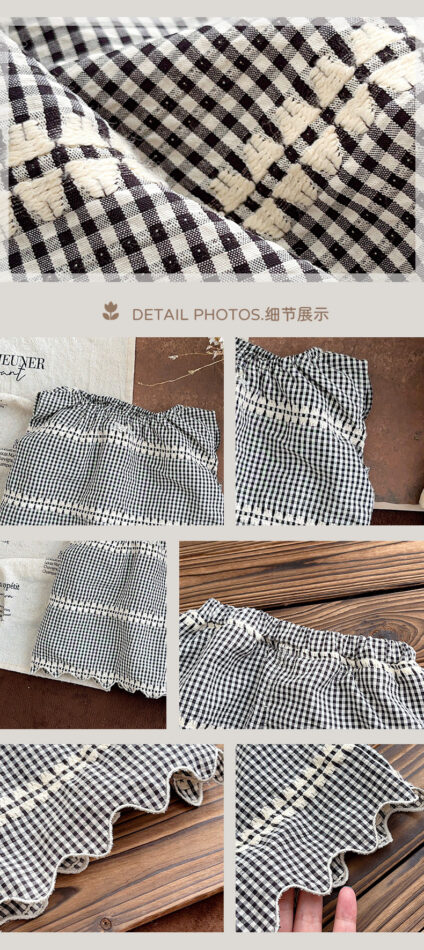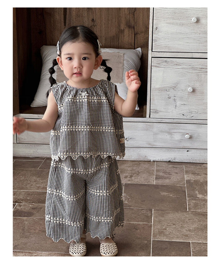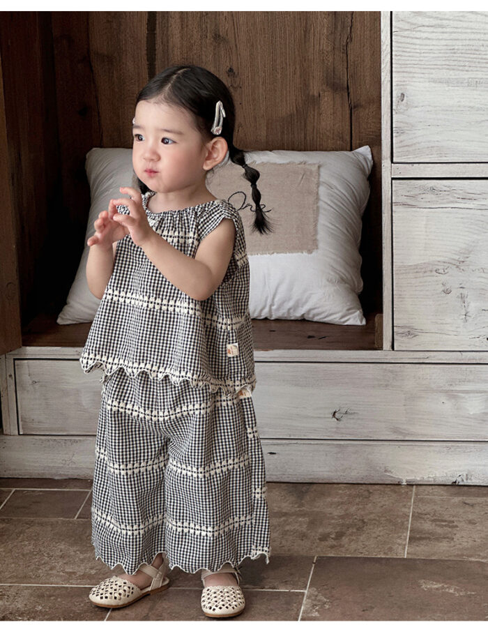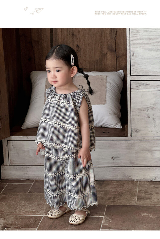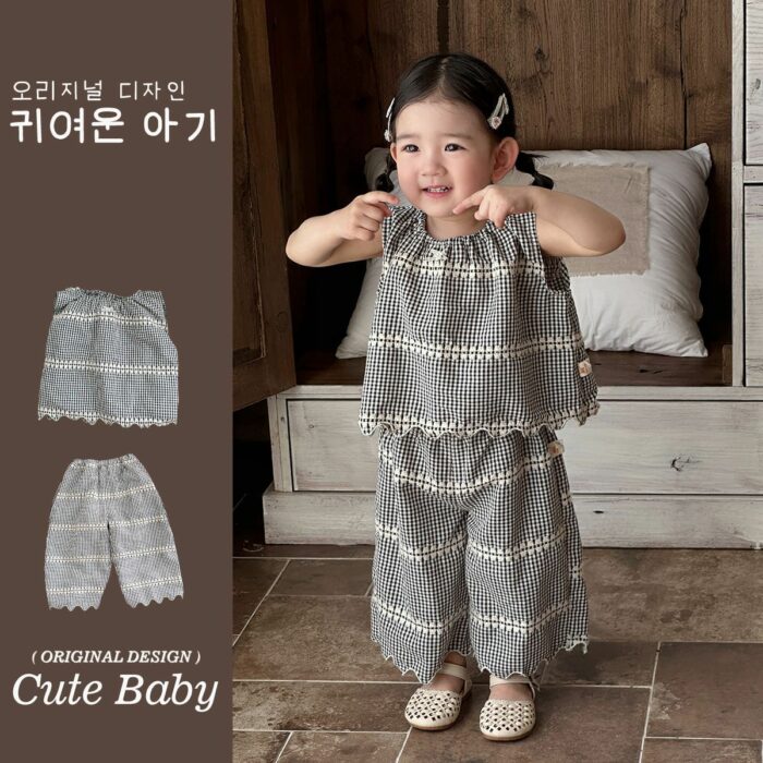 韓版夏季73~100cm – 黑色格紋套裝(上衣+下褲)