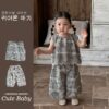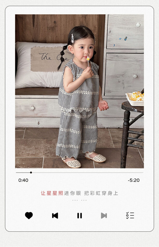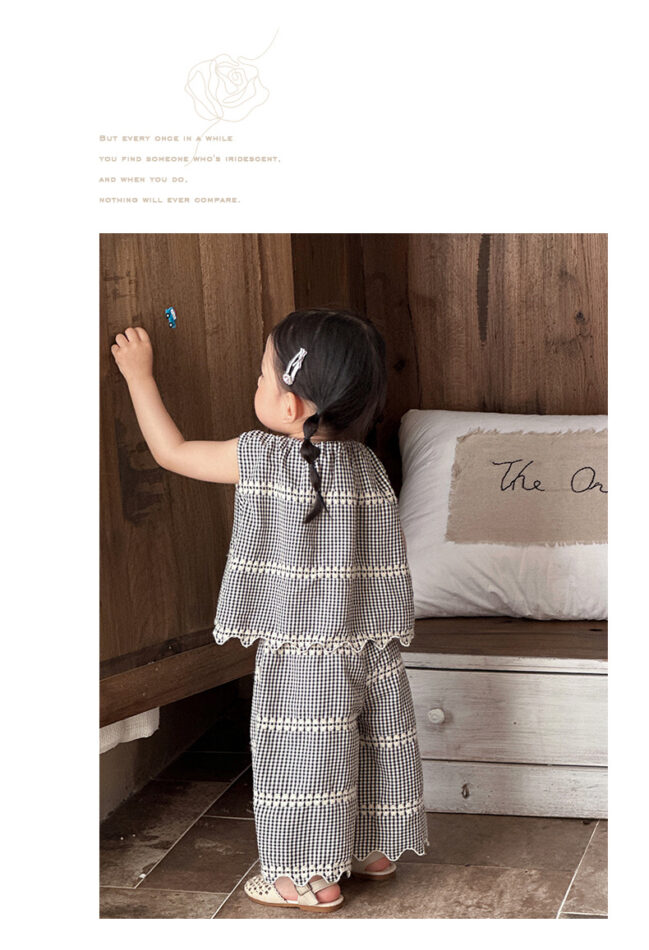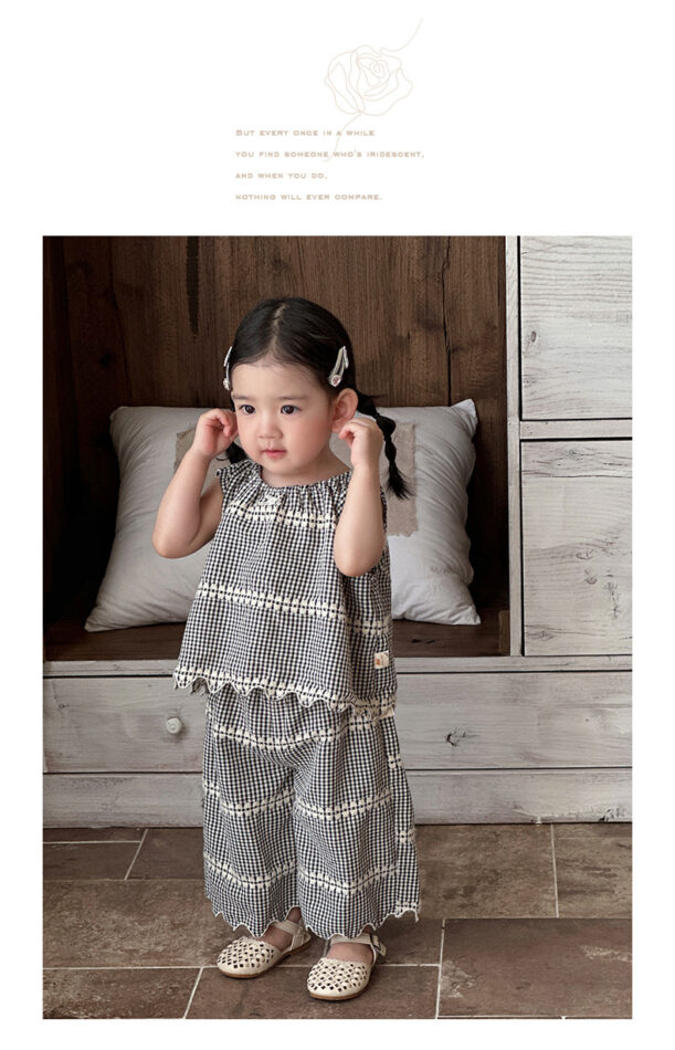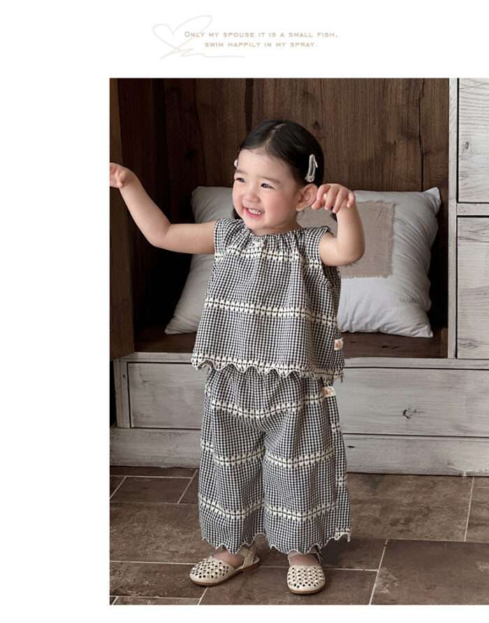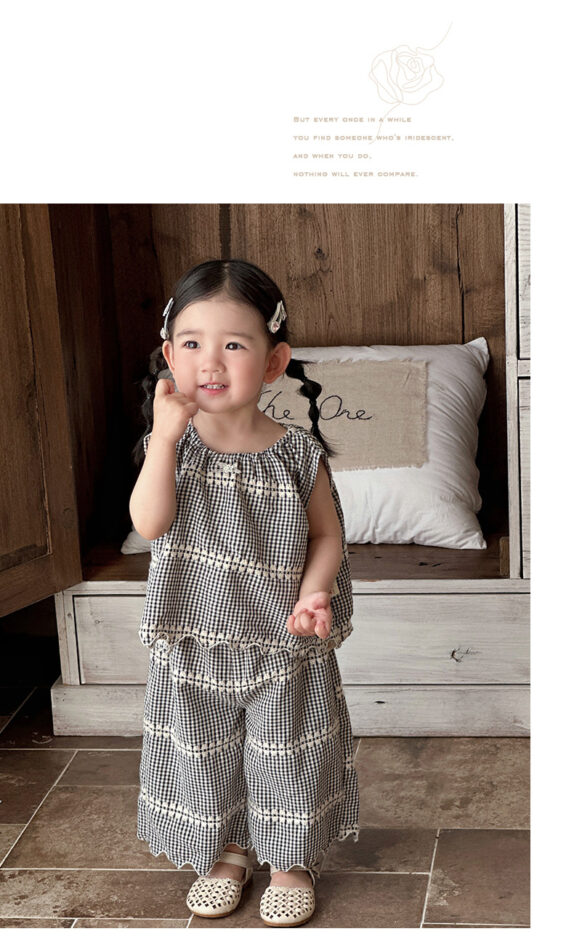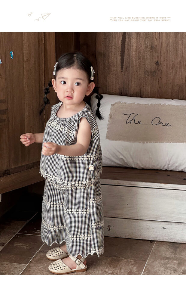 韓版夏季73~100cm – 黑色格紋套裝(上衣+下褲)