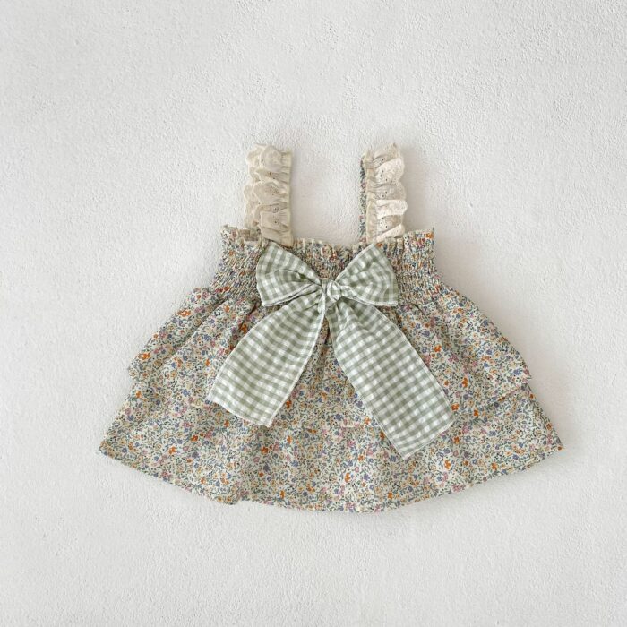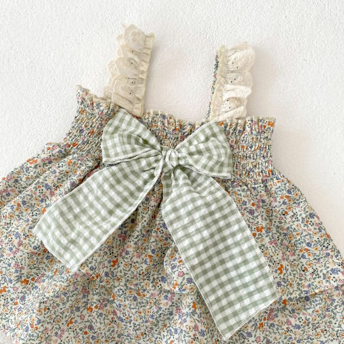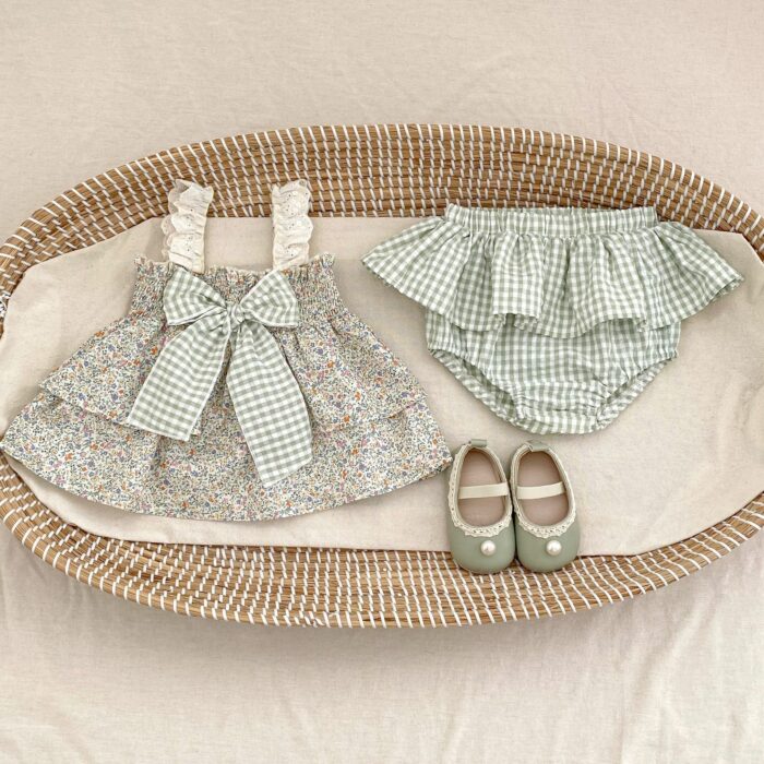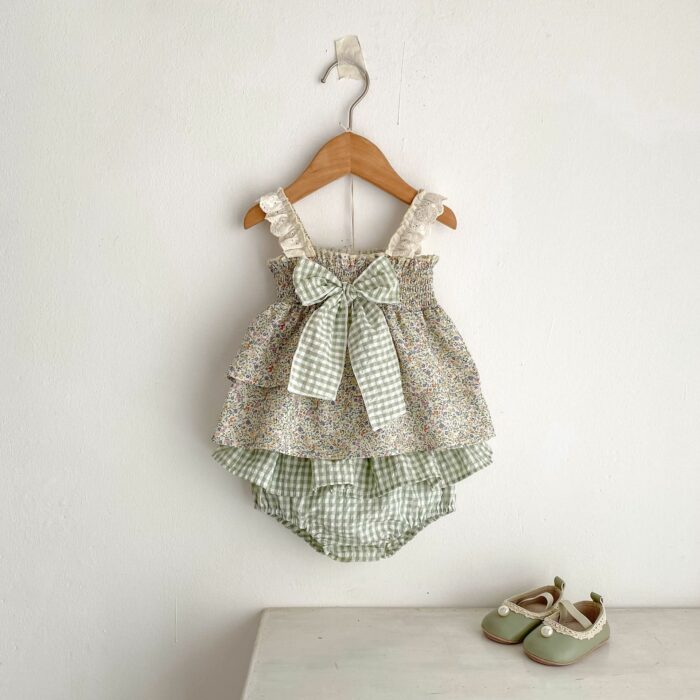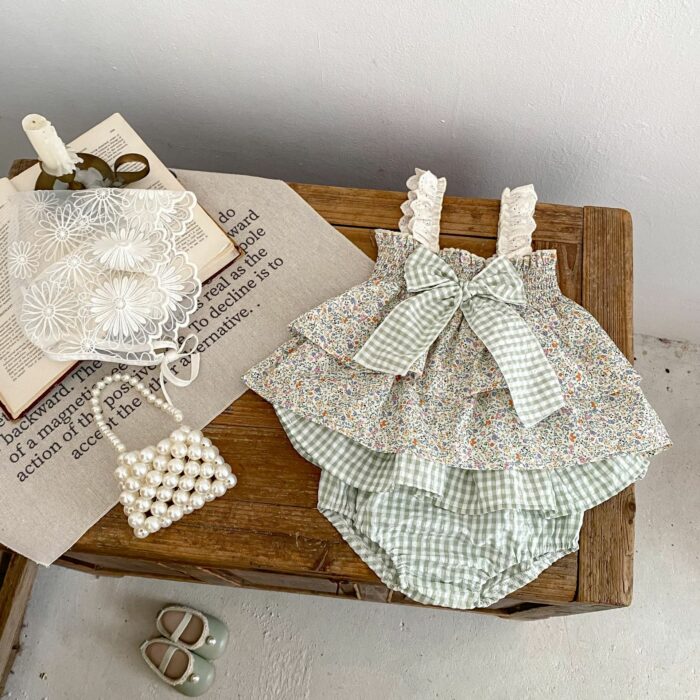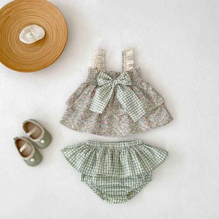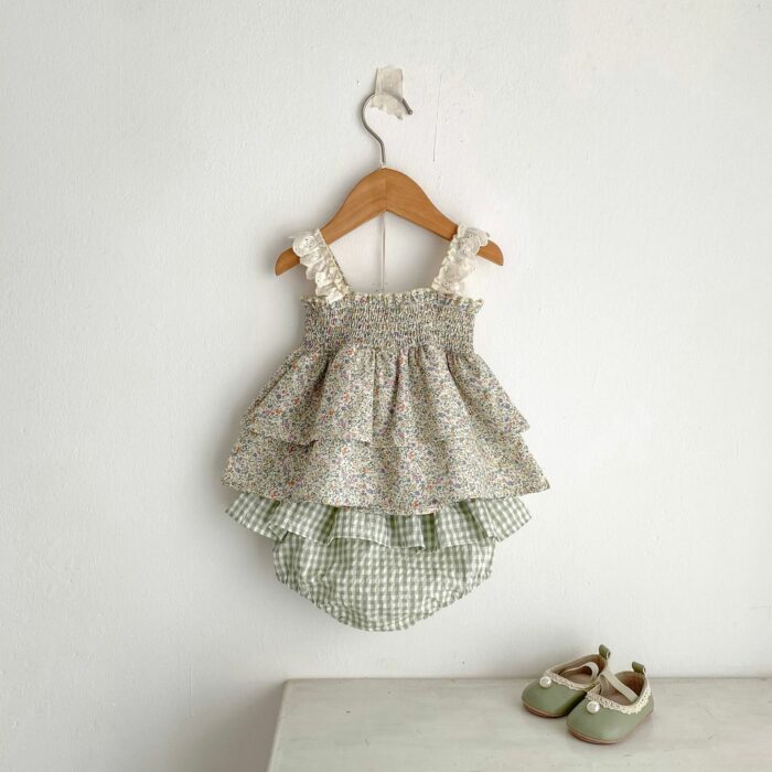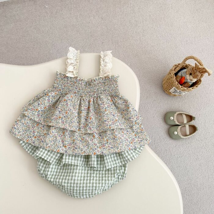 韓版夏季73~110cm – 碎花格紋套裝(上衣+下褲)