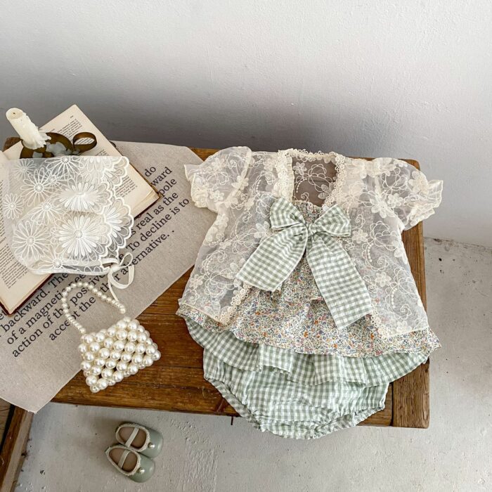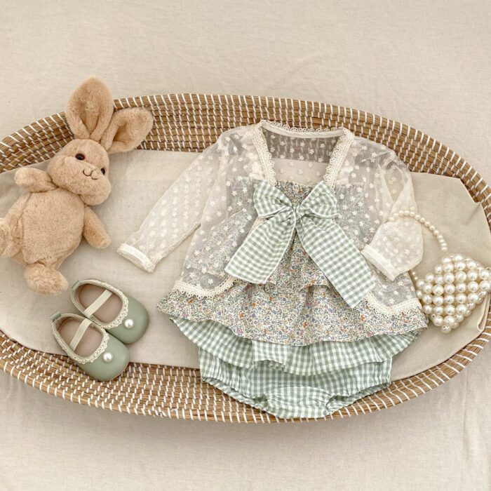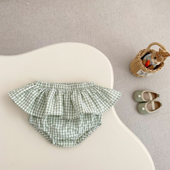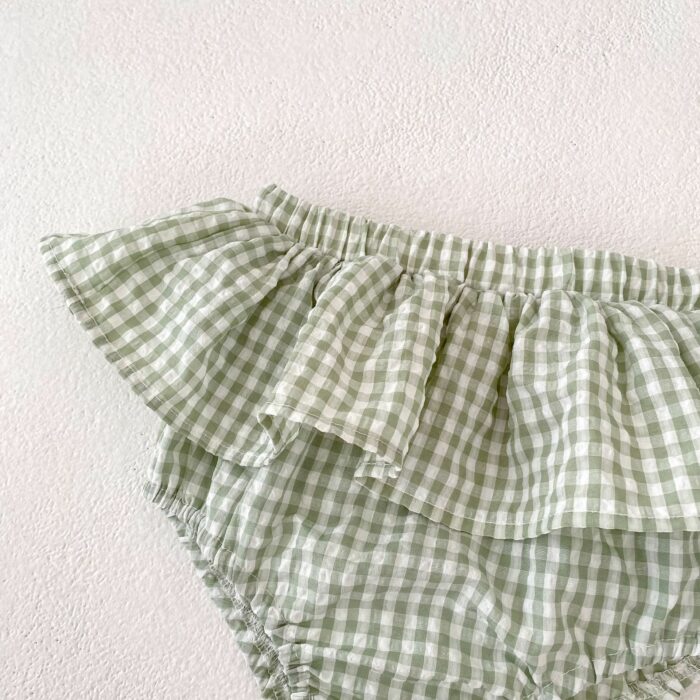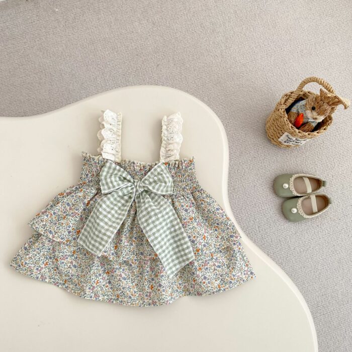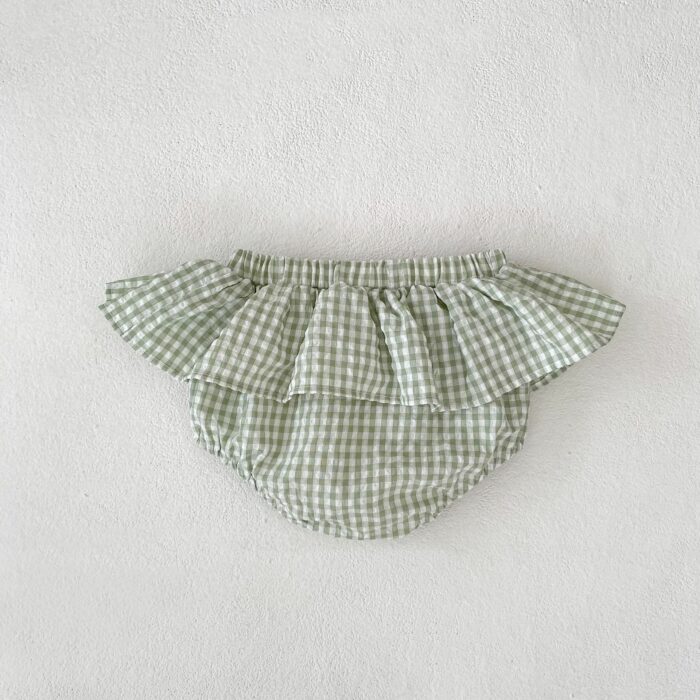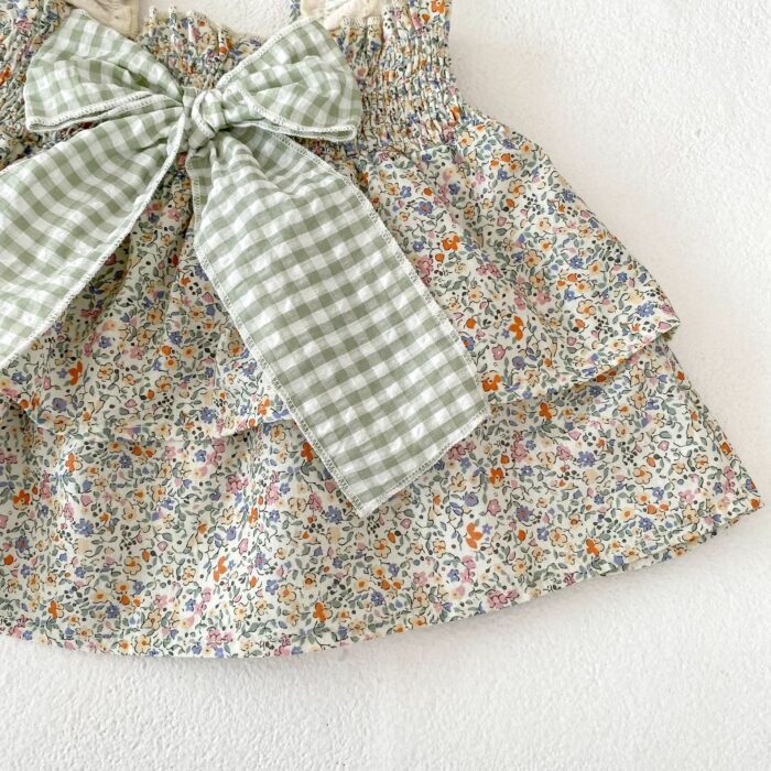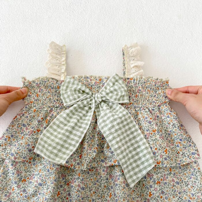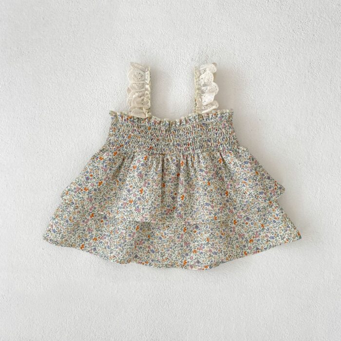 韓版夏季73~110cm – 碎花格紋套裝(上衣+下褲)