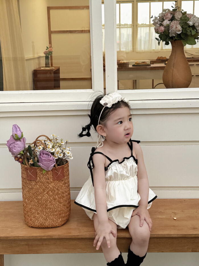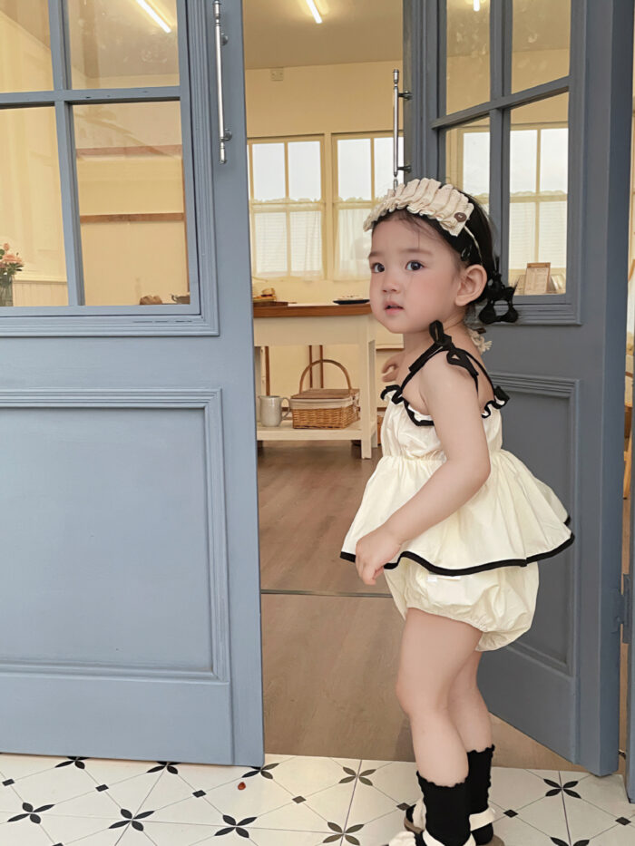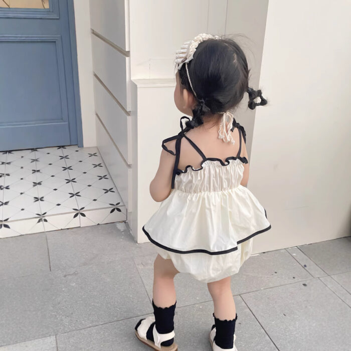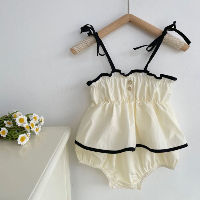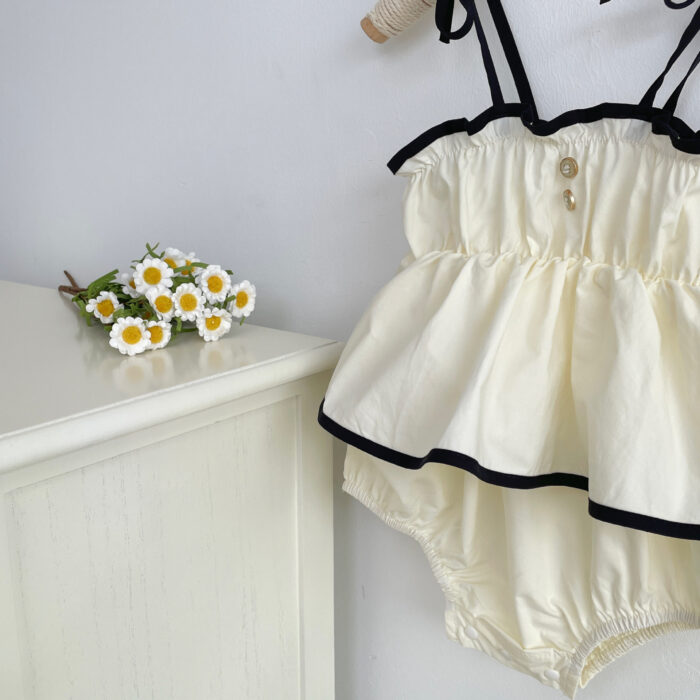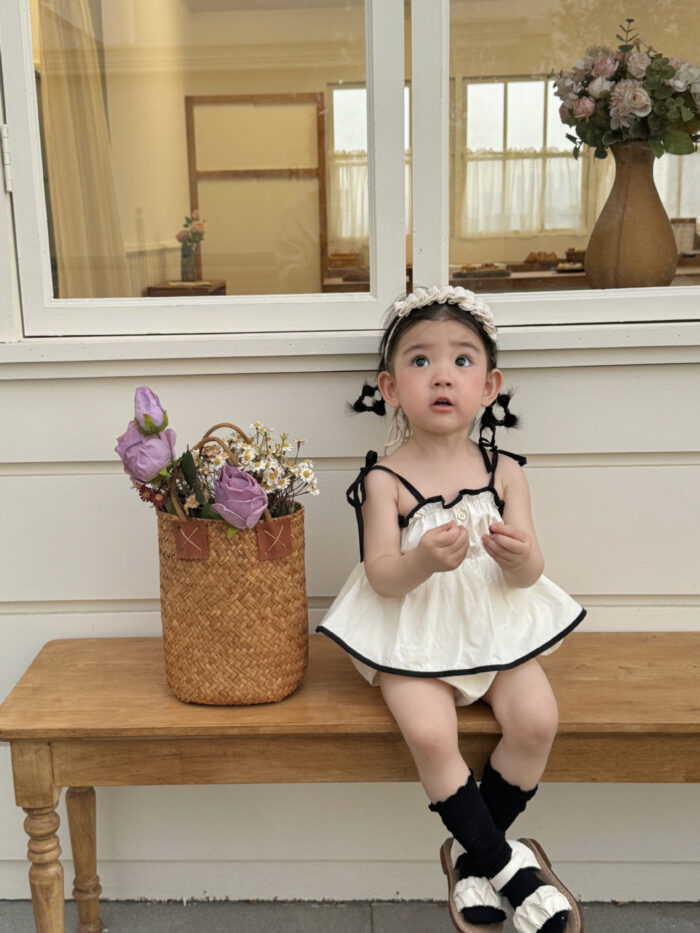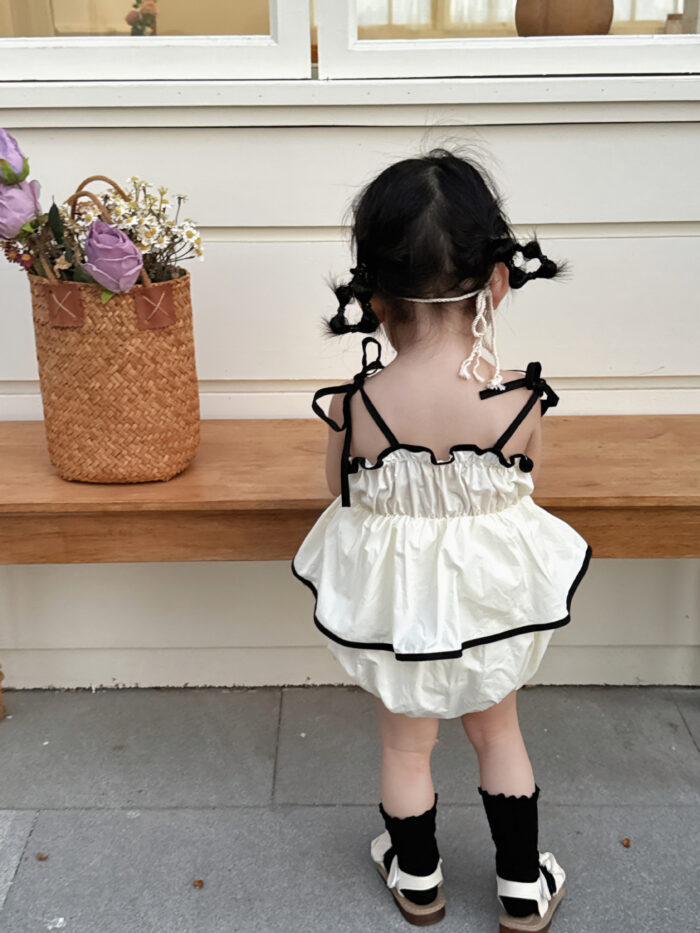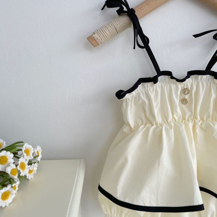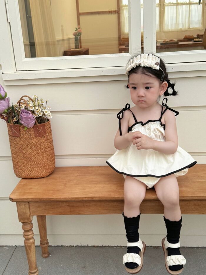 韓版夏季80~90cm – 黑色滾邊綁帶包屁衣