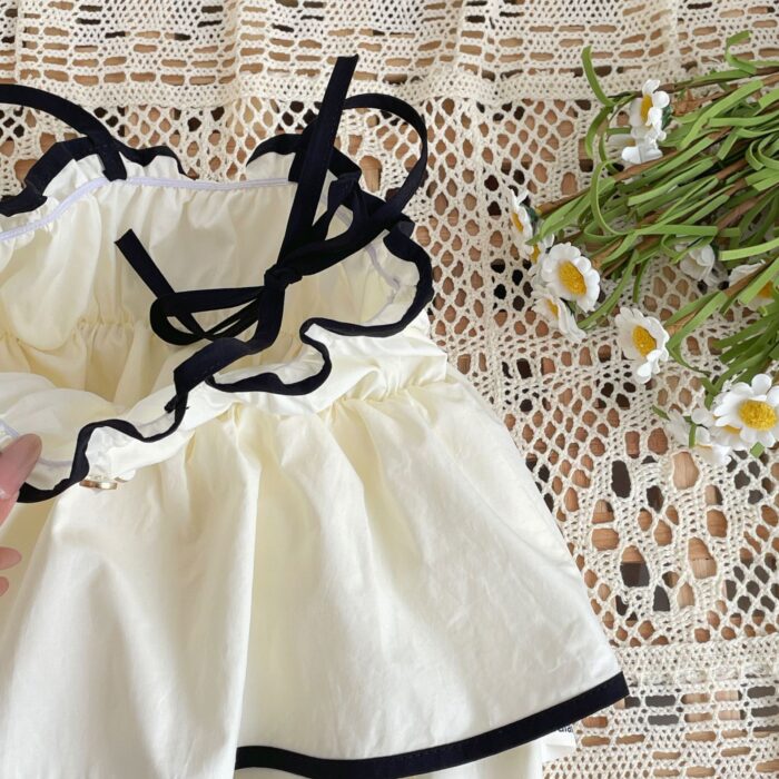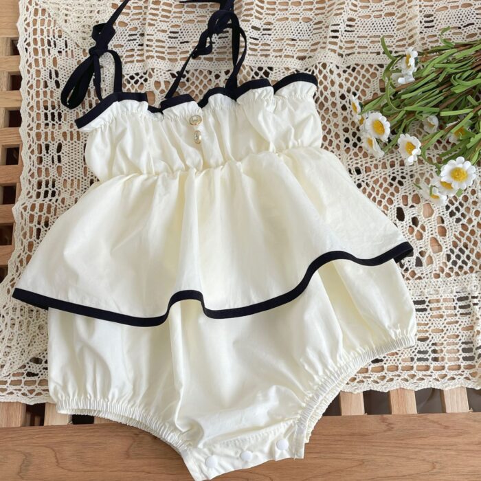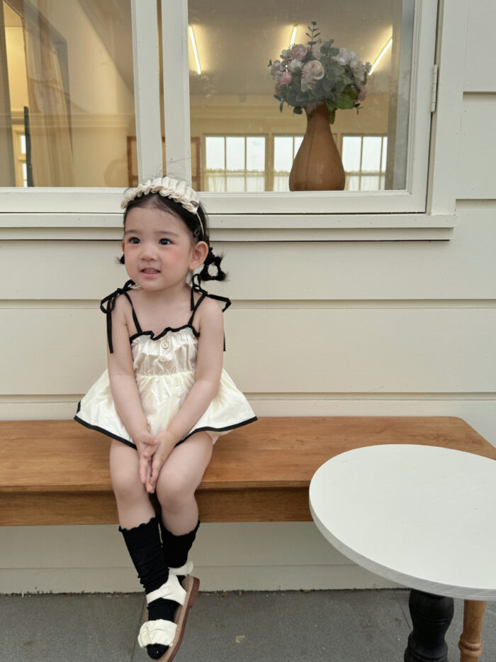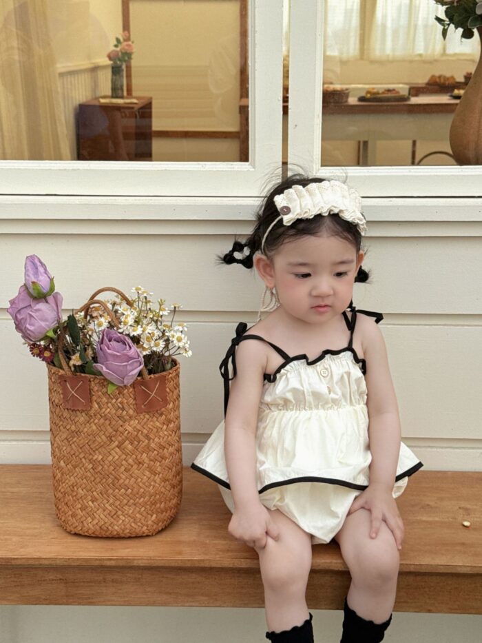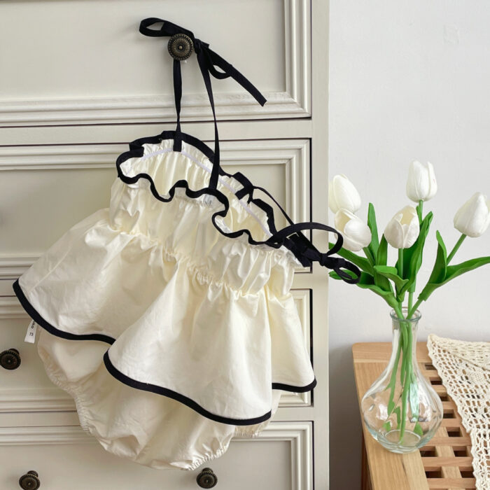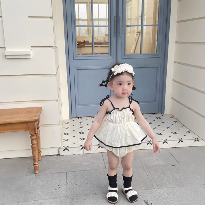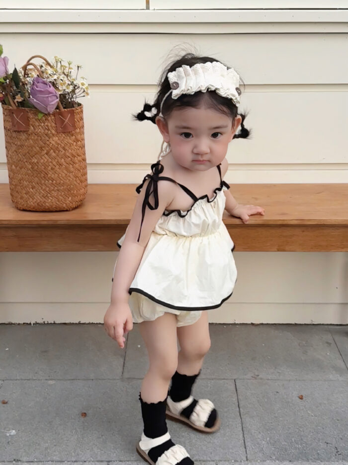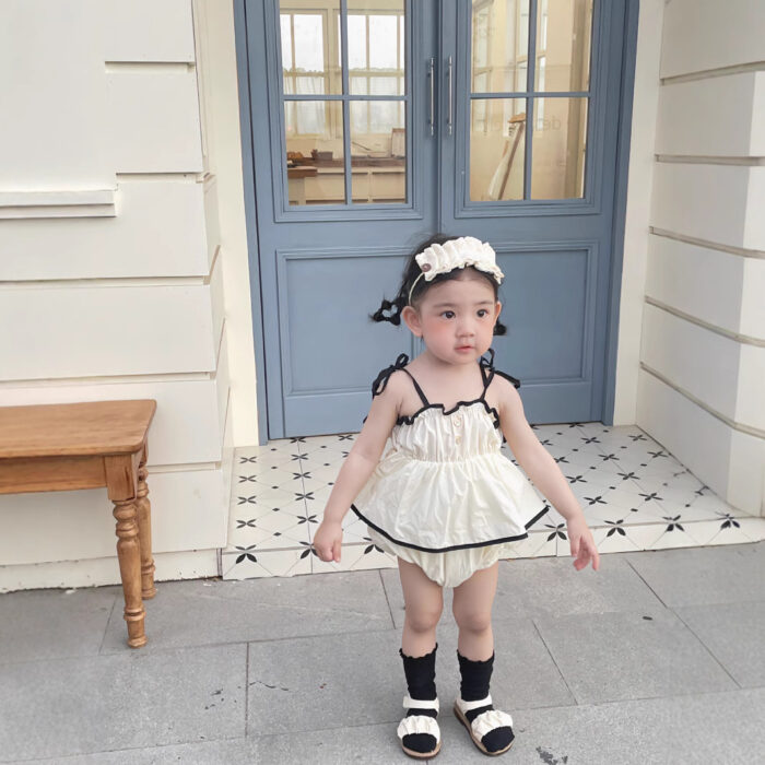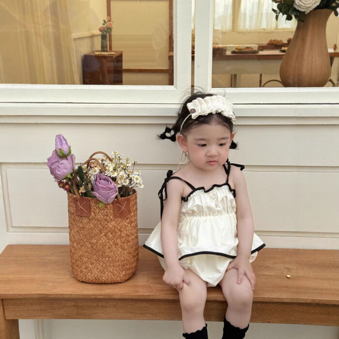 韓版夏季80~90cm – 黑色滾邊綁帶包屁衣