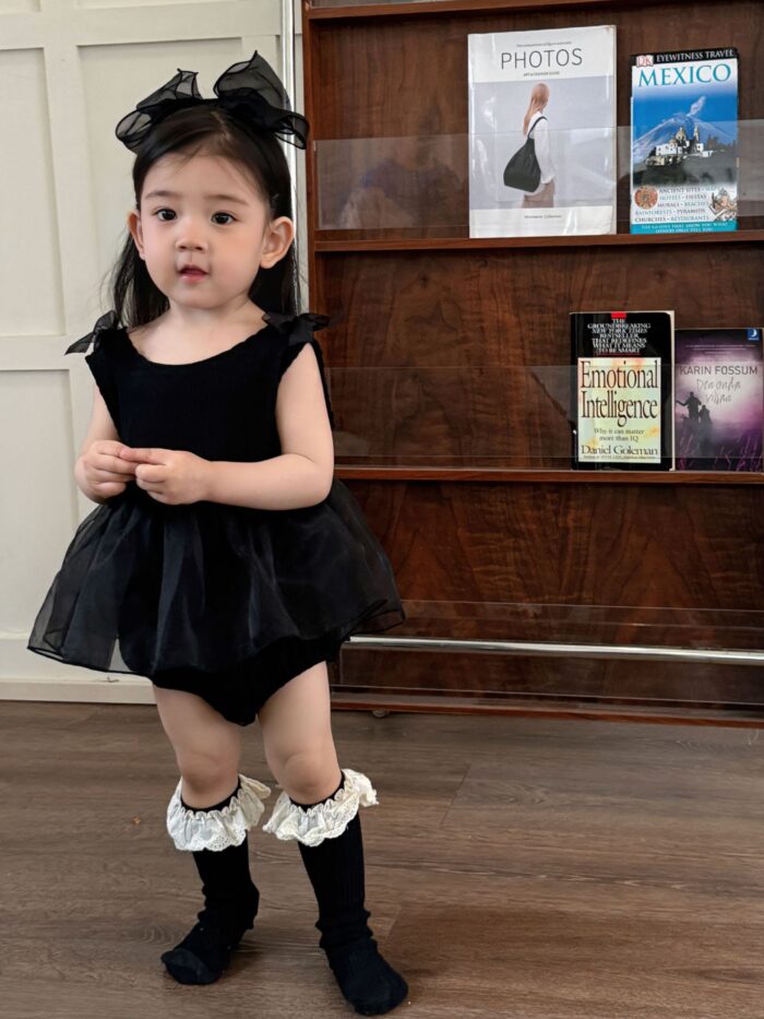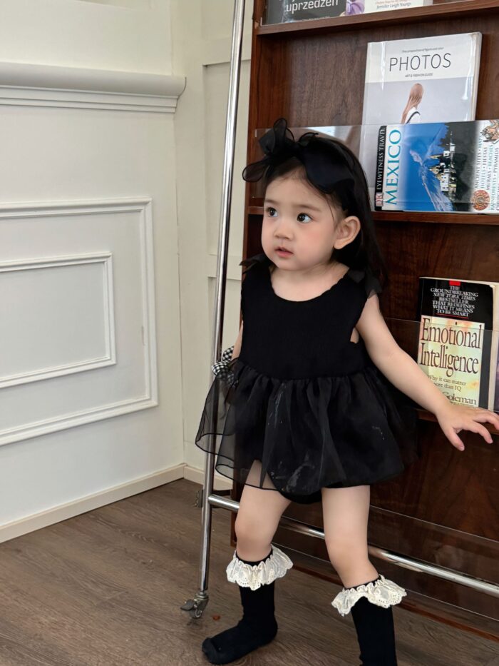 韓版夏季73~90cm – 黑色網紗公主包屁衣
