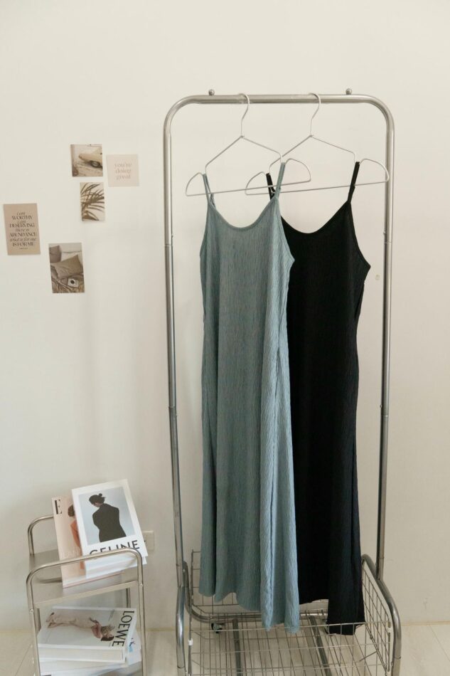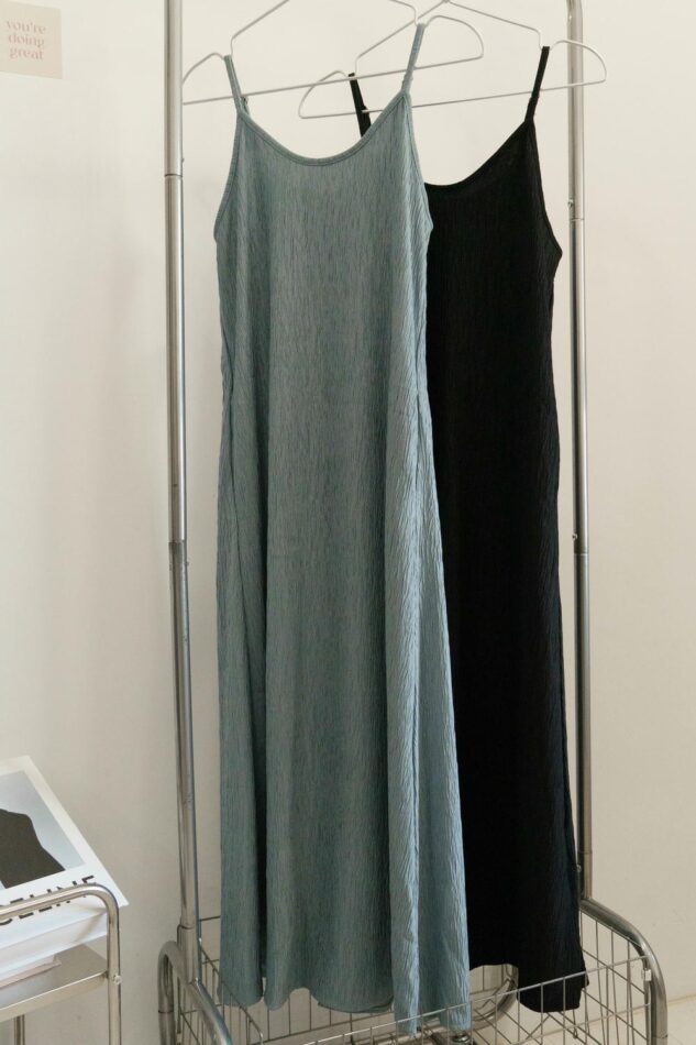 現貨韓版女裝 – 超美亮亮紋路長洋裝 / 二色