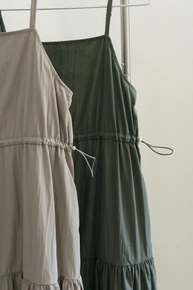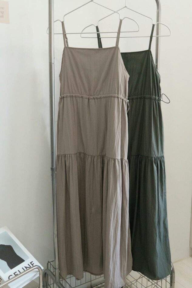 現貨韓版女裝 – 雙邊抽繩蛋糕長洋裝 / 二色