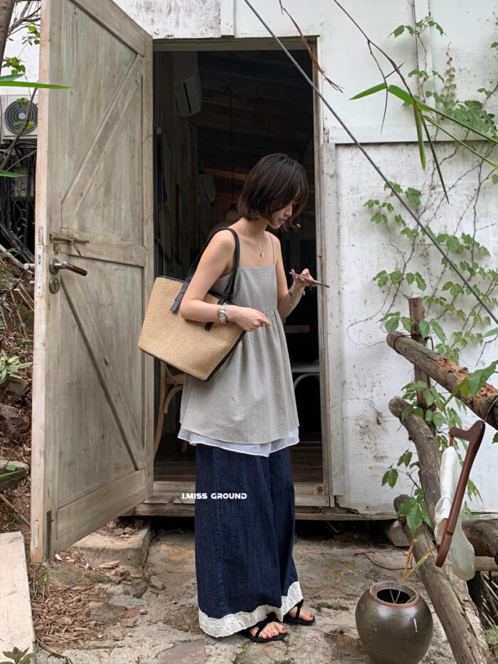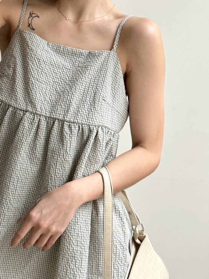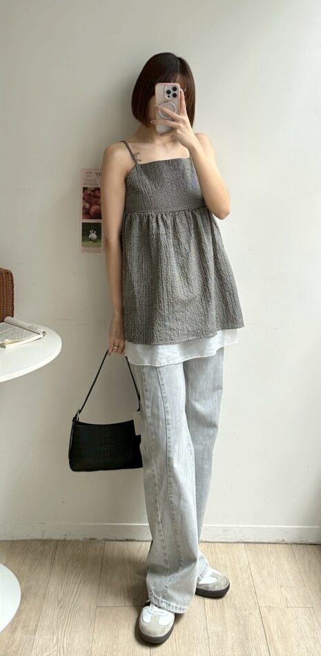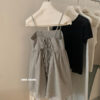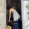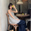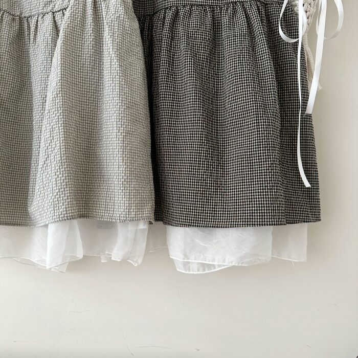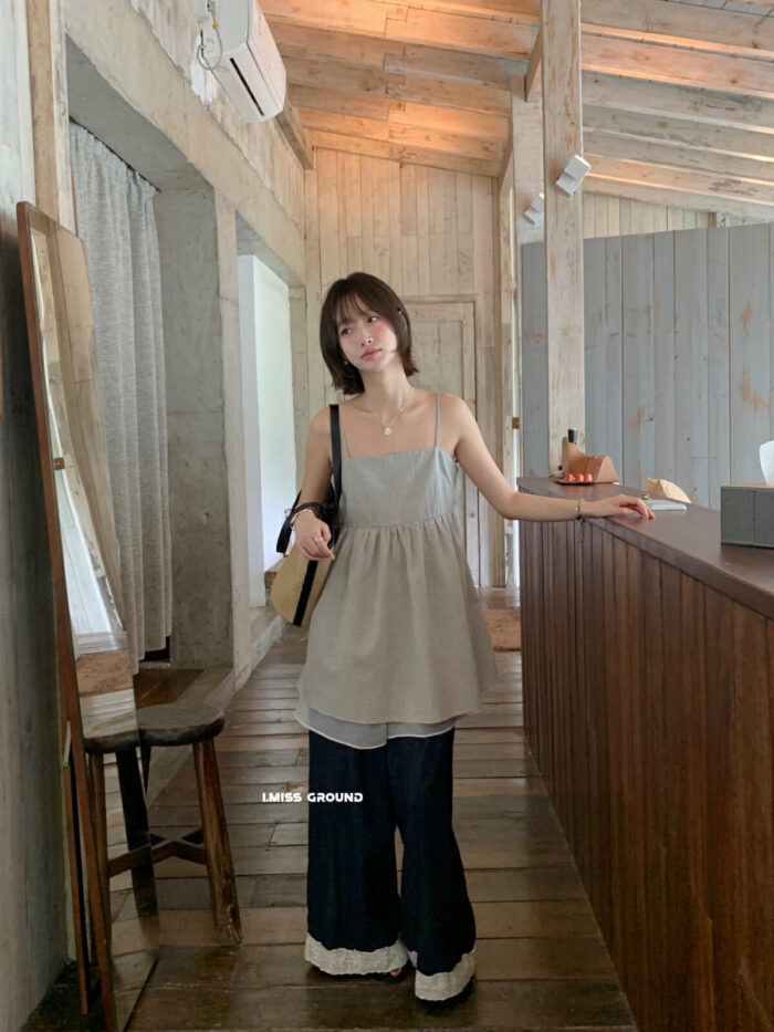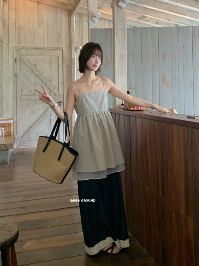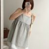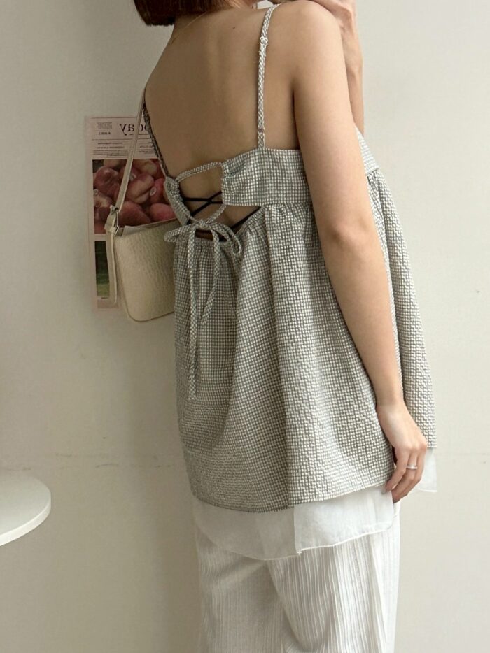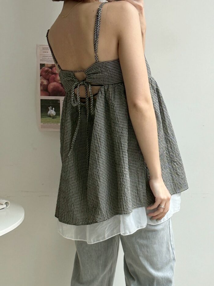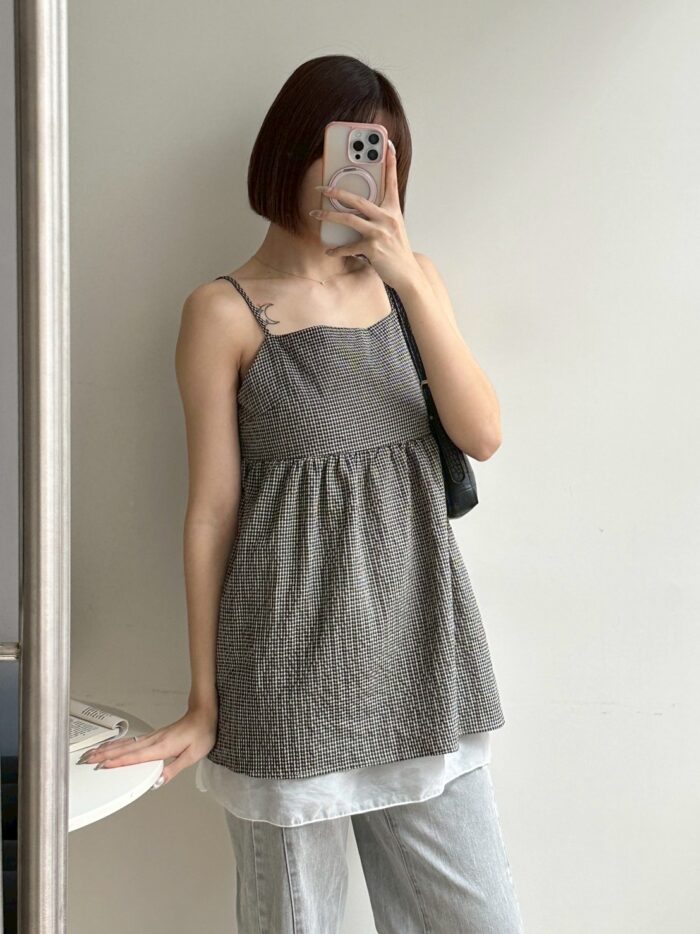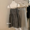 現貨韓版女裝 – 超美格子歐根紗拼接吊帶背心 / 黑色