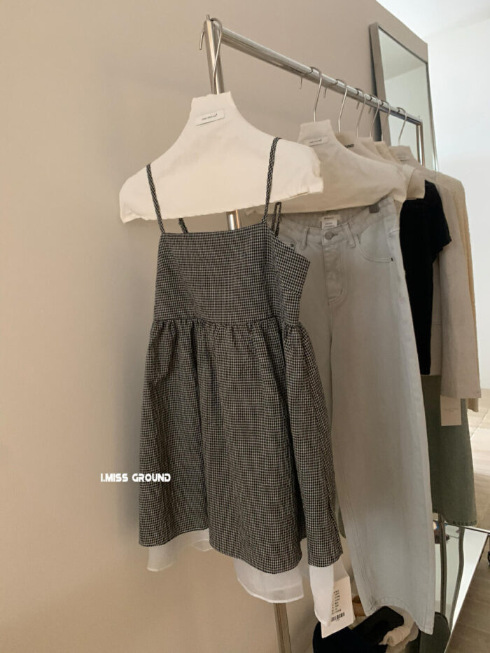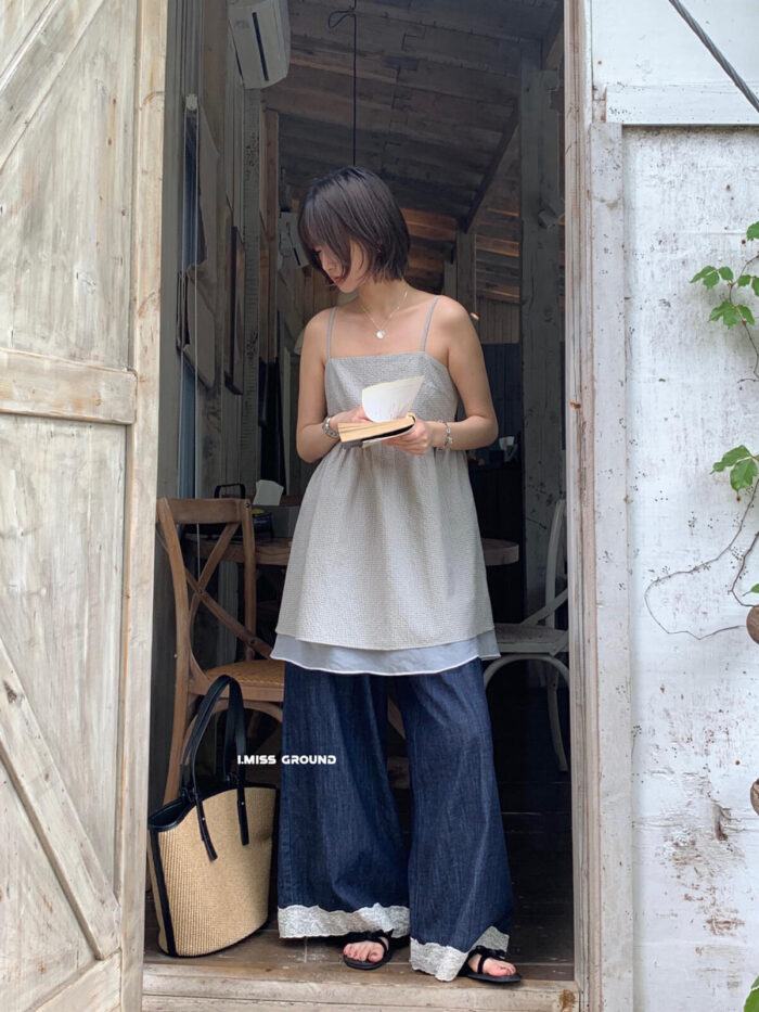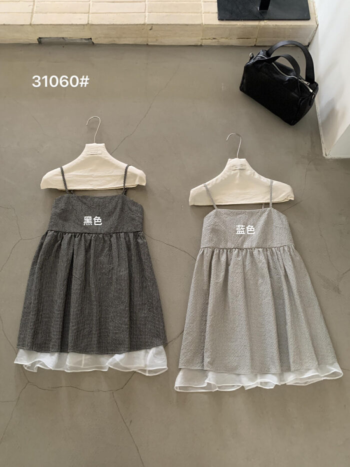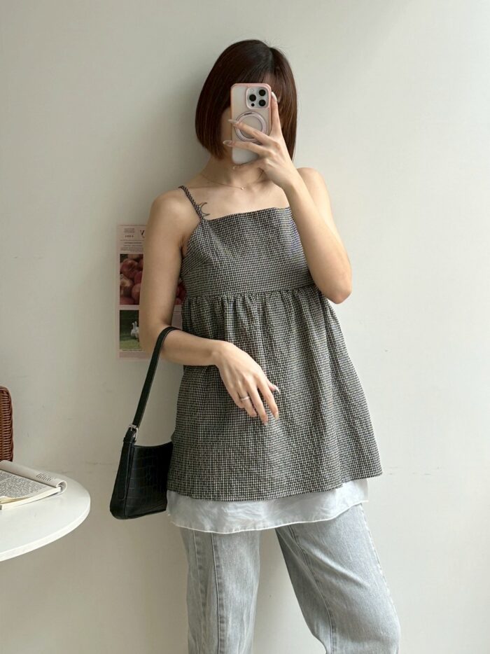 現貨韓版女裝 - 超美格子歐根紗拼接吊帶背心 / 黑色 數量