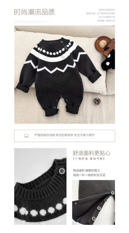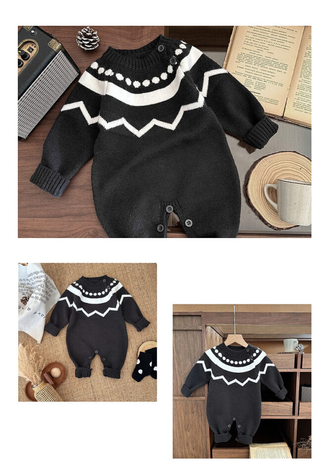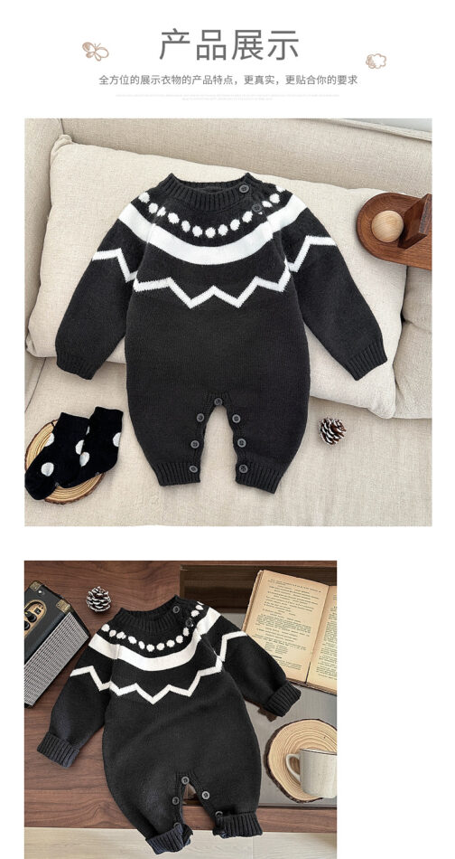 韓版春季 66~100cm – 圓領斜釦連身衣