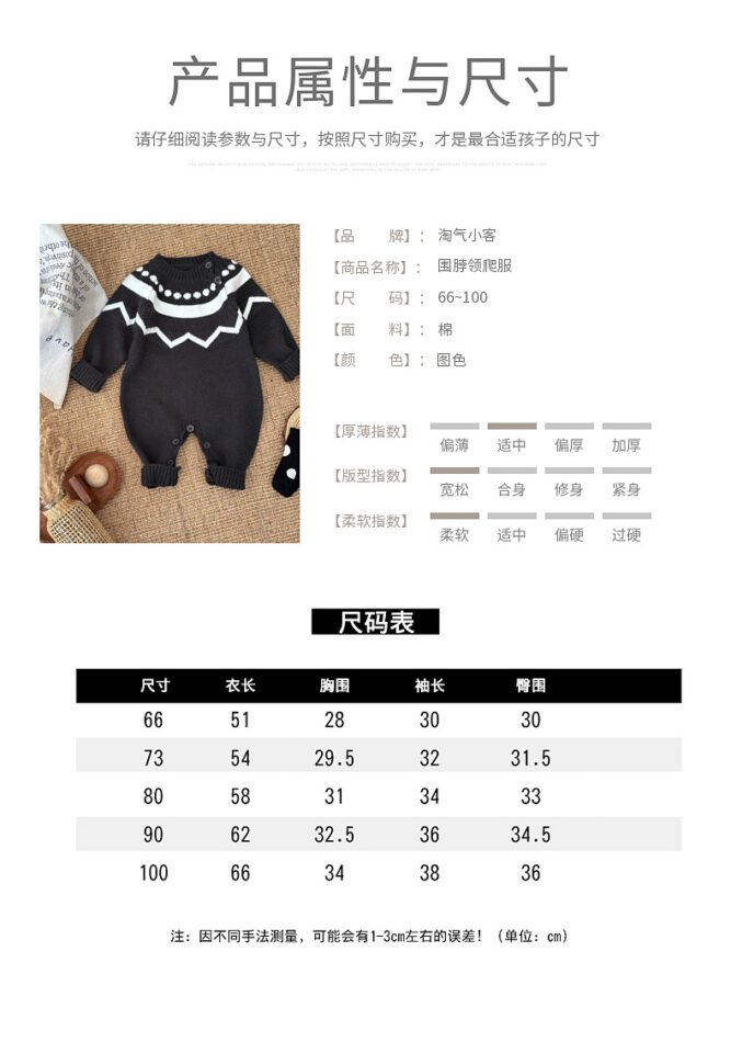 韓版春季 66~100cm - 圓領斜釦連身衣 數量
