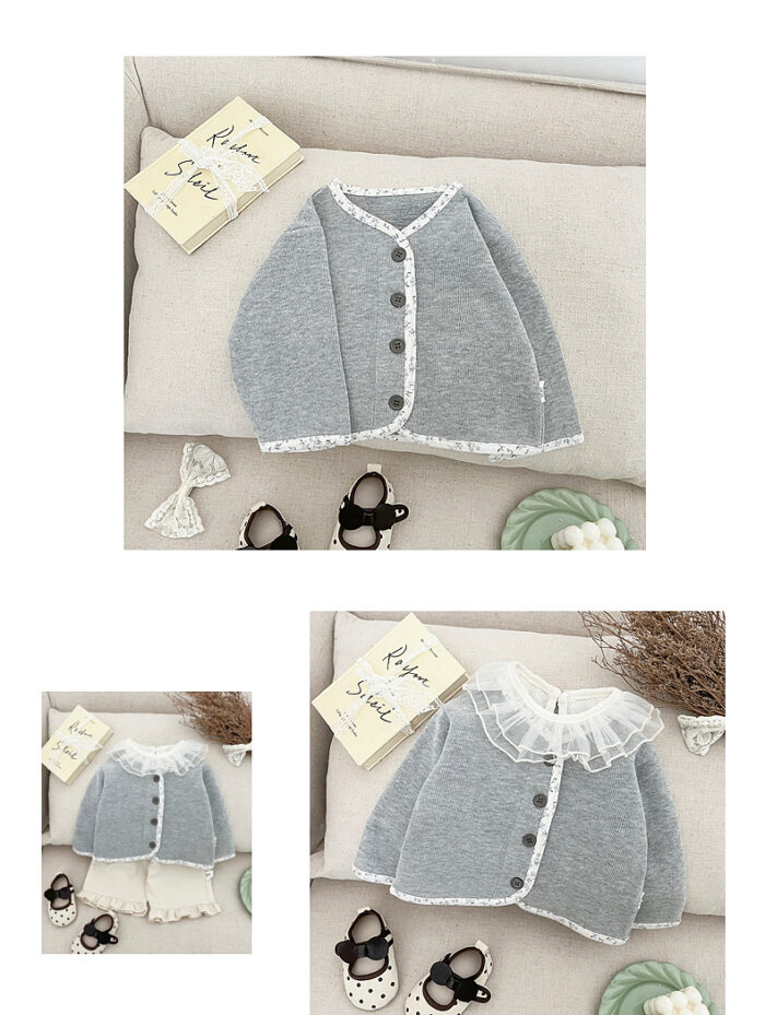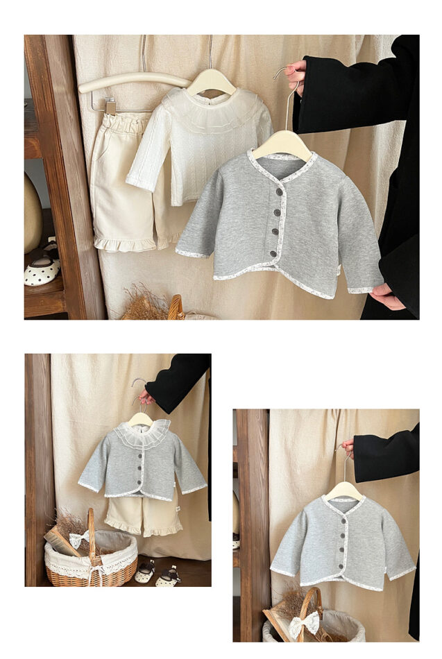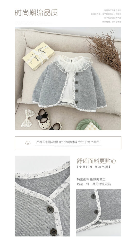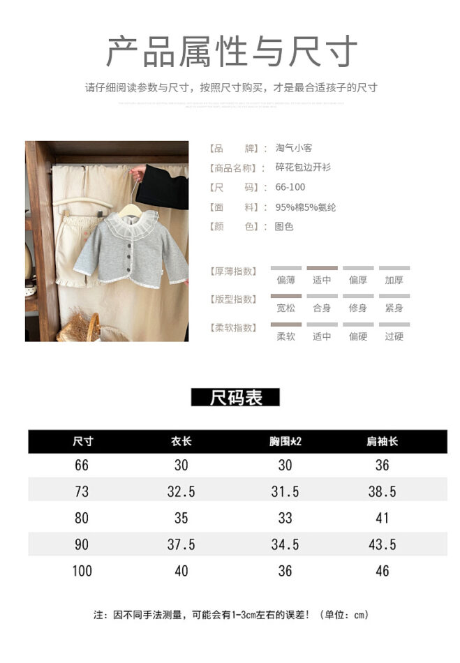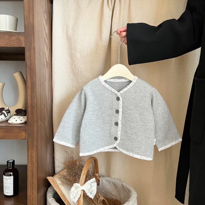 韓版春季 66~100cm – 碎花滾邊開襟衫