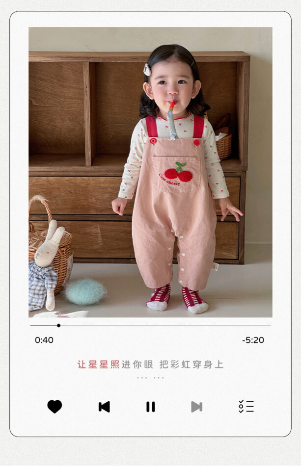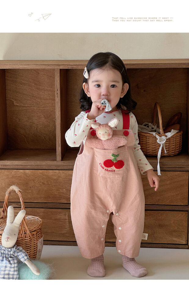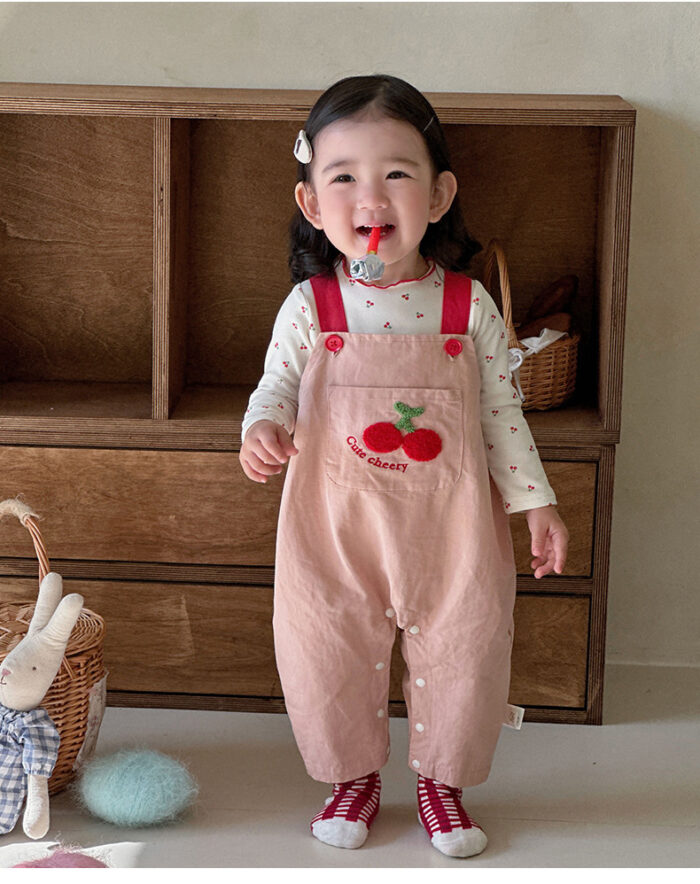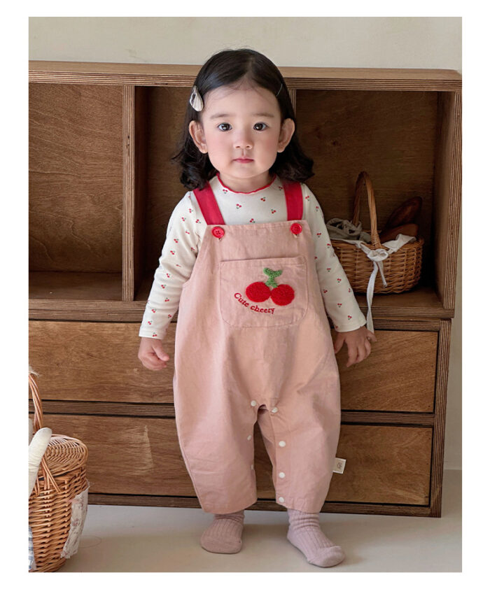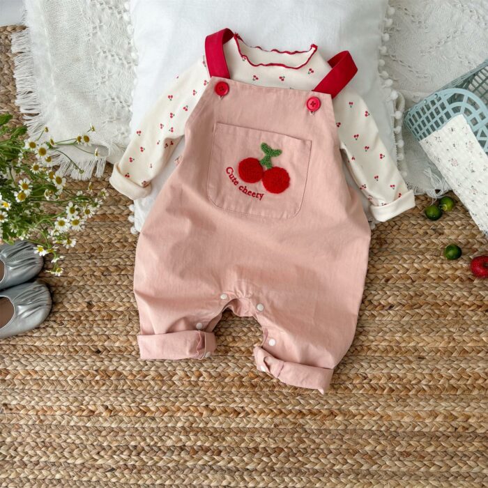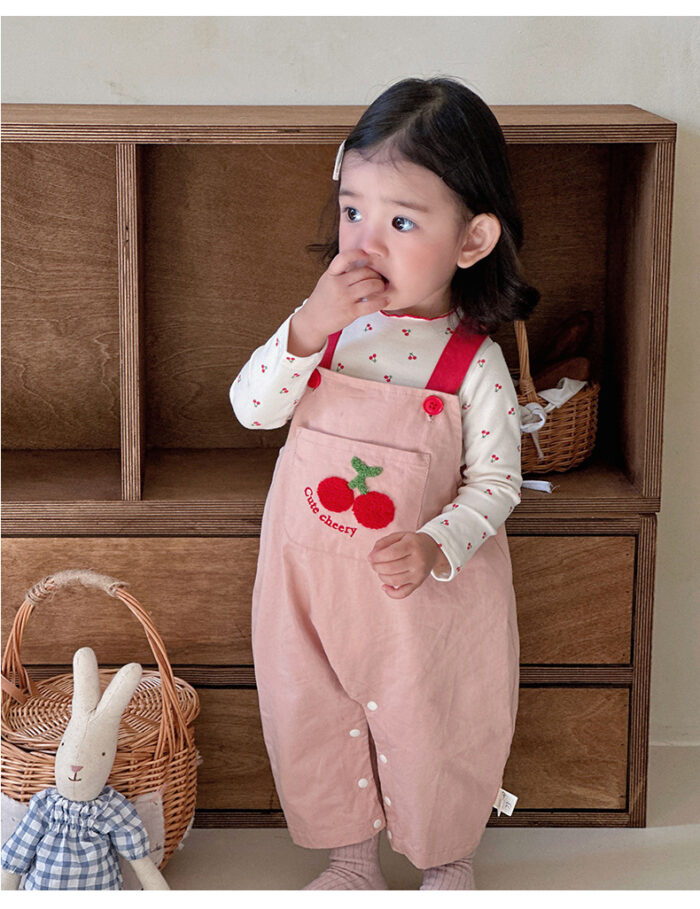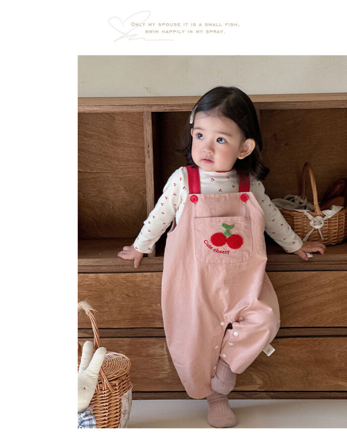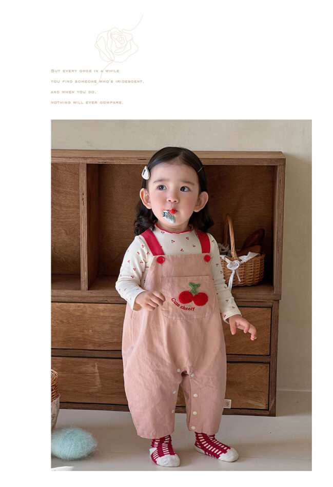 韓版春季73~100cm – 櫻桃吊帶褲+打底衣