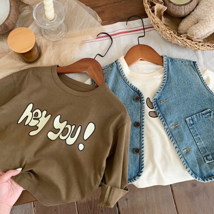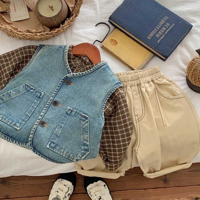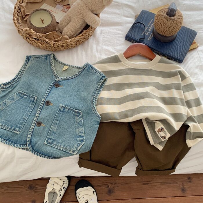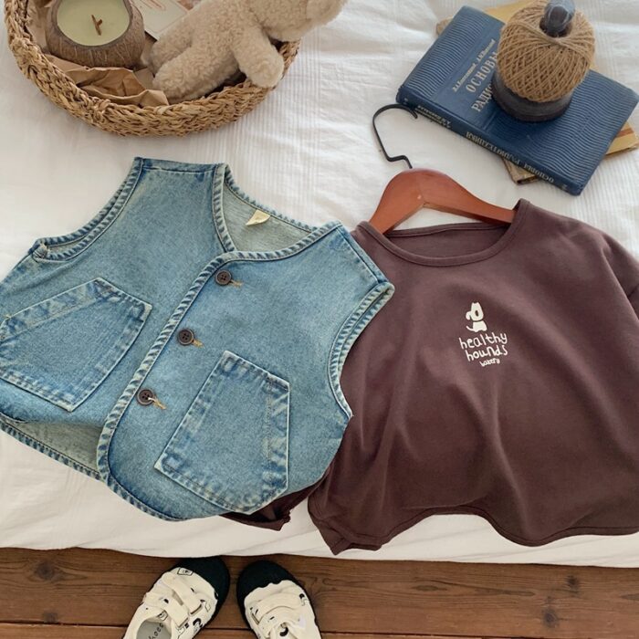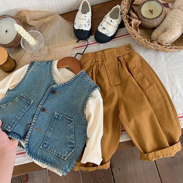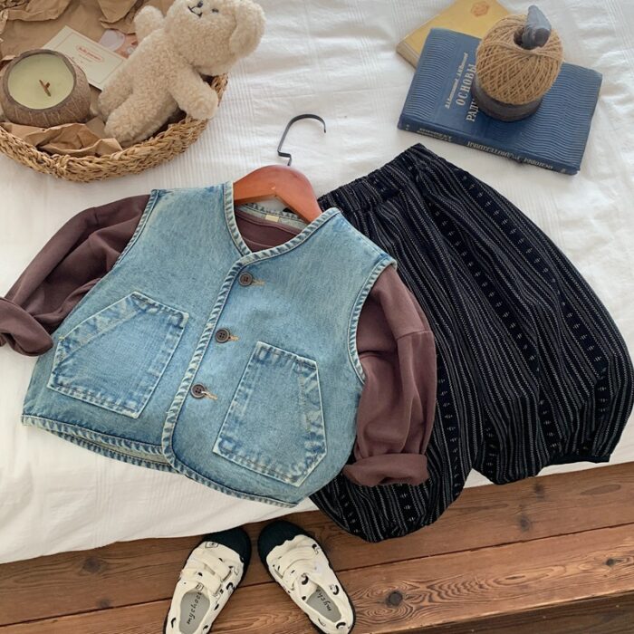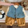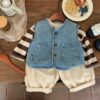 韓版春季80~130 - 斜口袋牛仔背心 數量