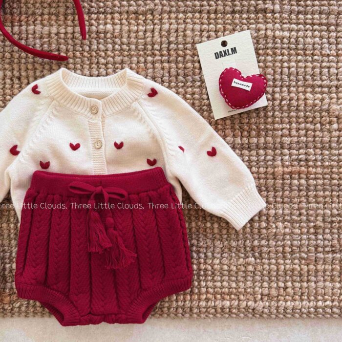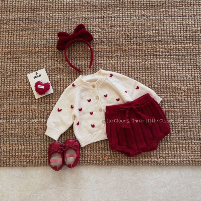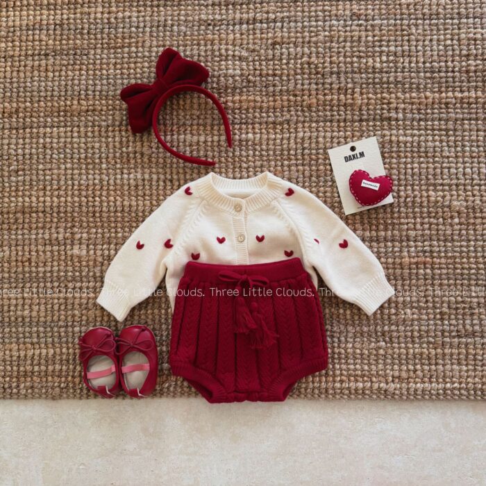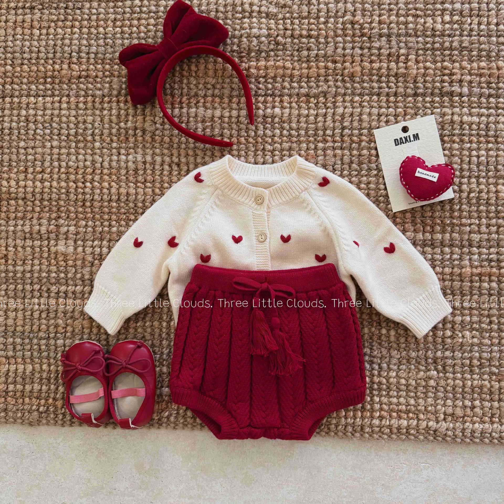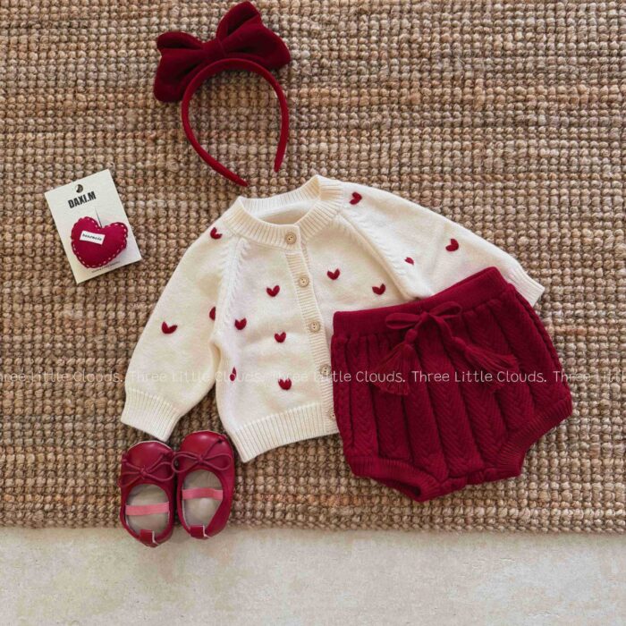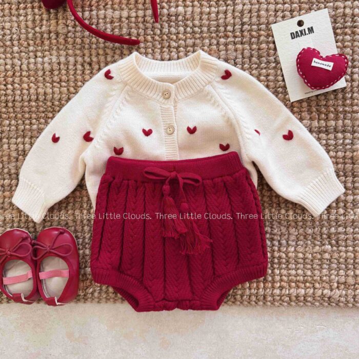 韓版秋冬66~100cm – 愛心針織外套/針織短褲