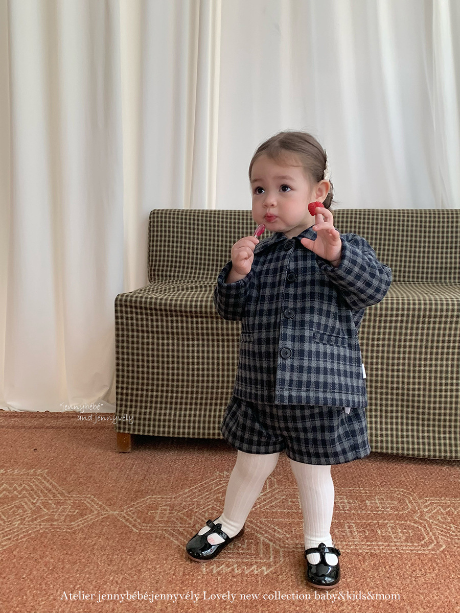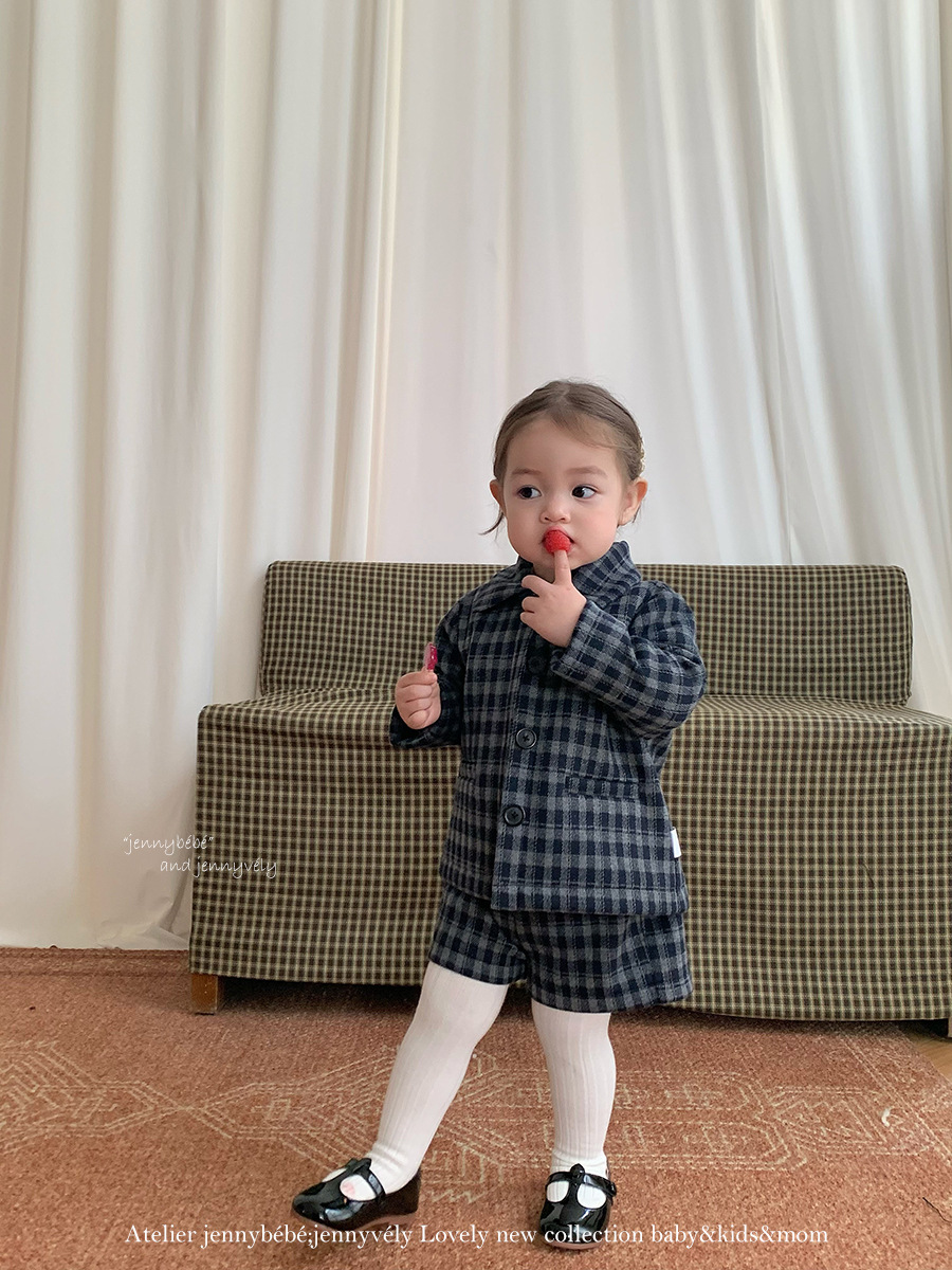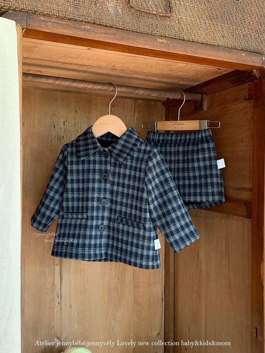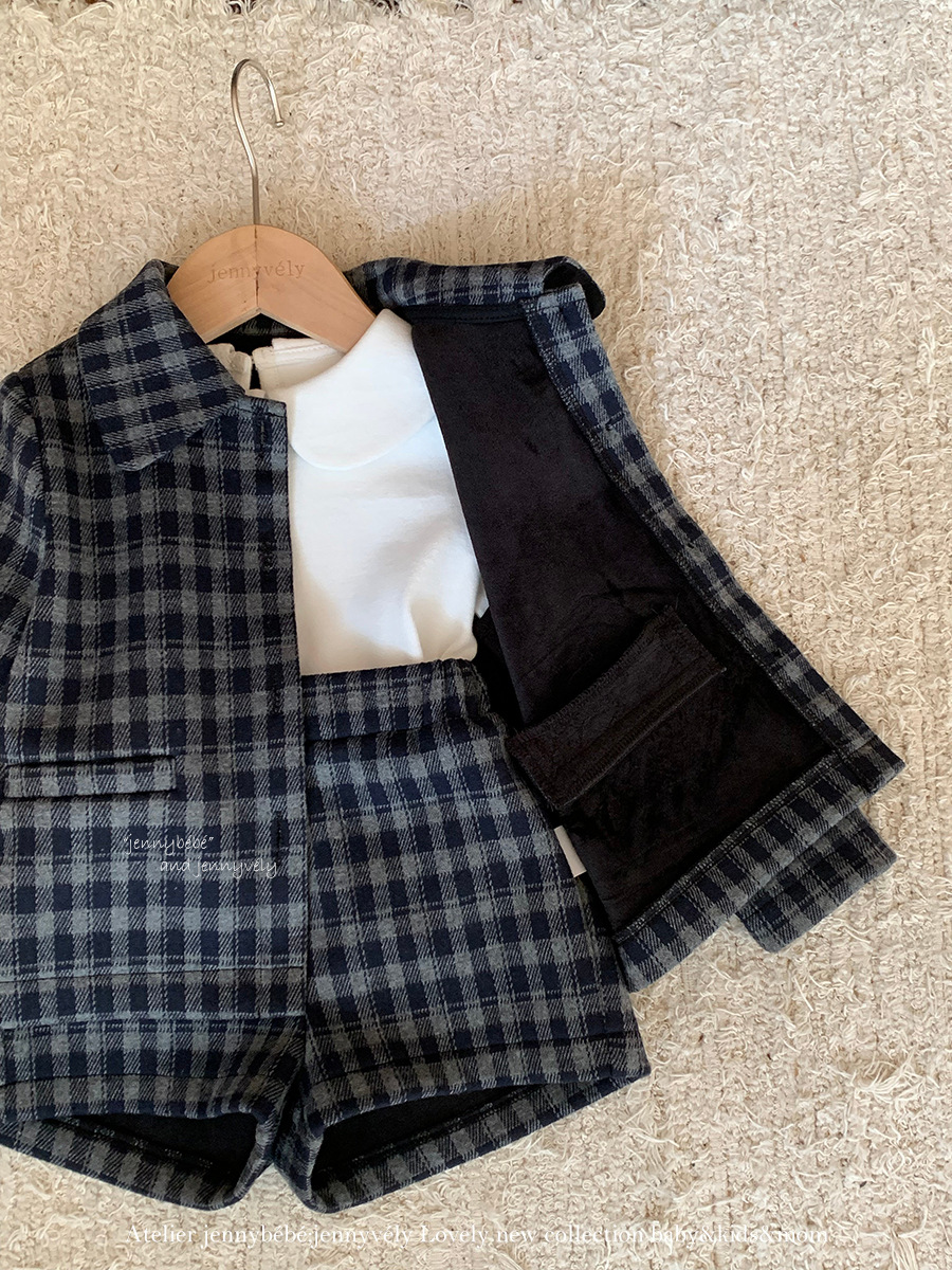 韓版秋冬80~110cm – 加絨格子西裝套裝 / 打底衣