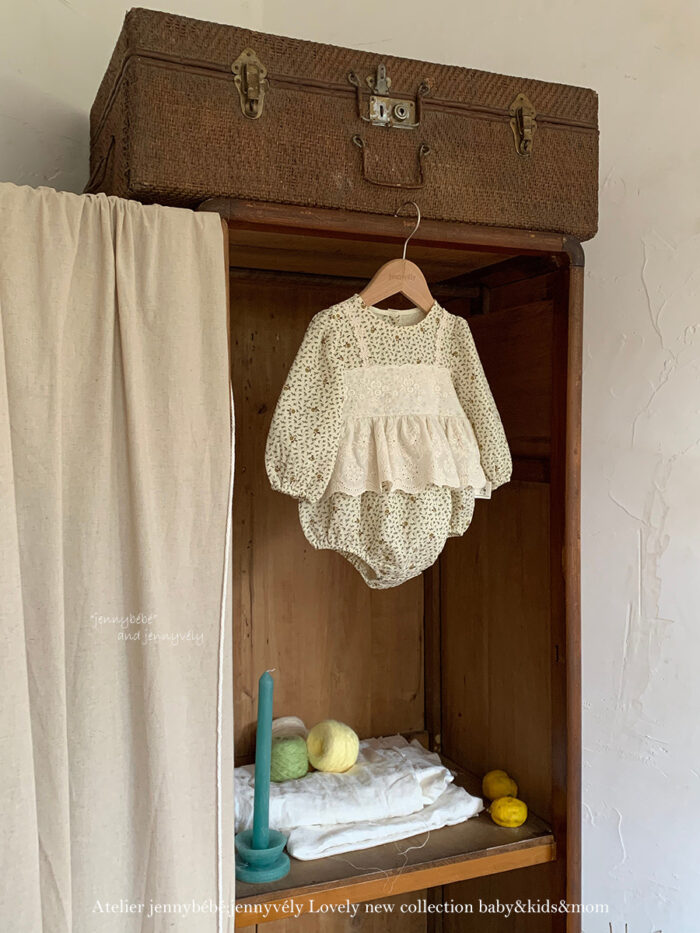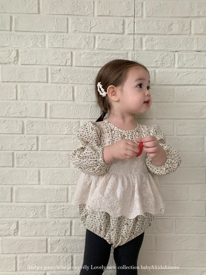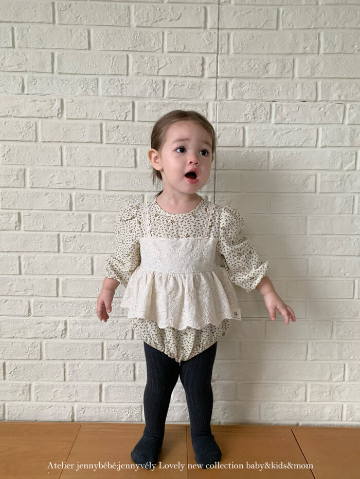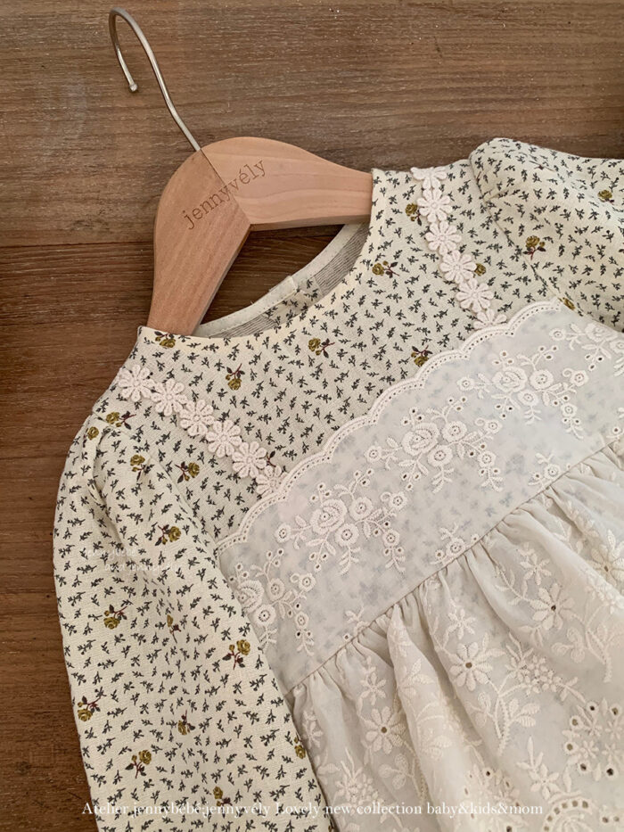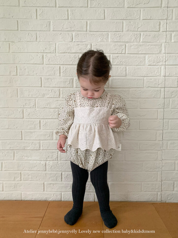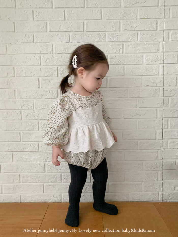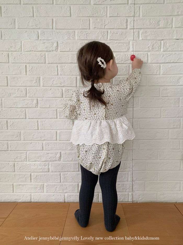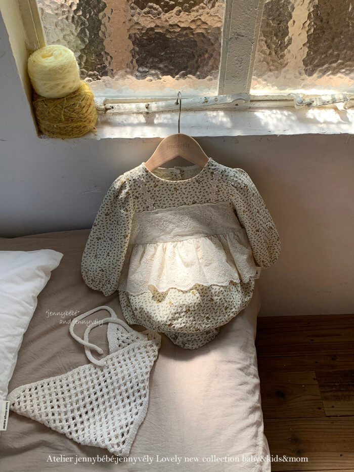 韓版秋季 66~90cm – 假兩件碎花蕾絲包屁衣