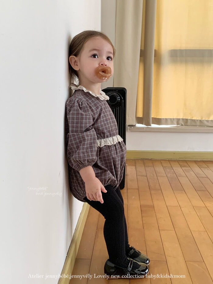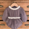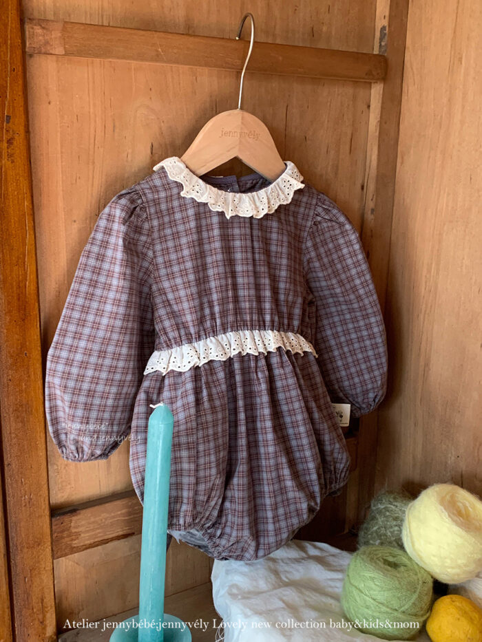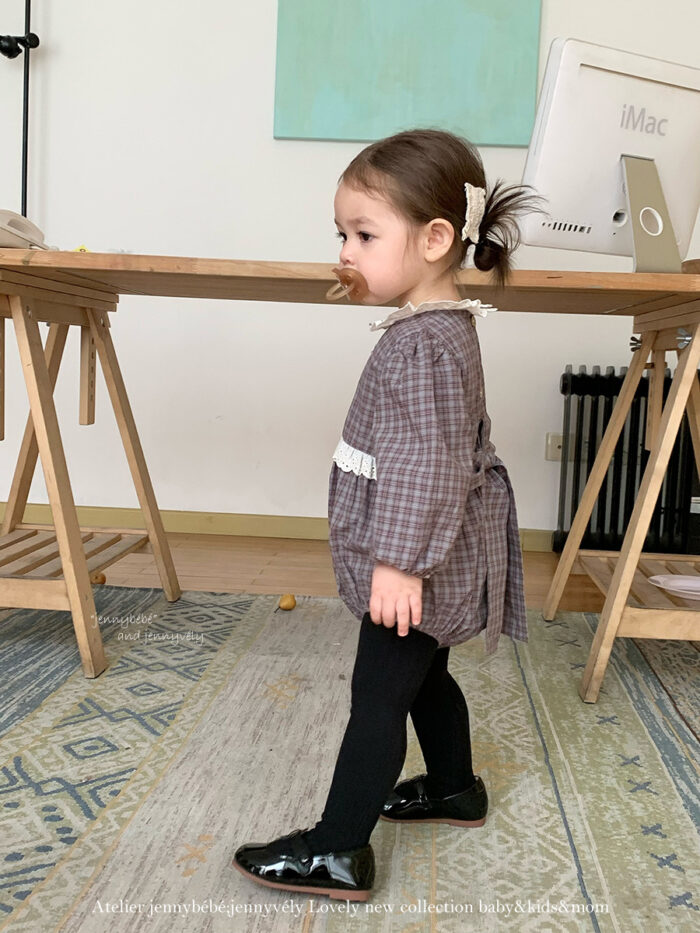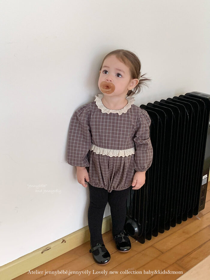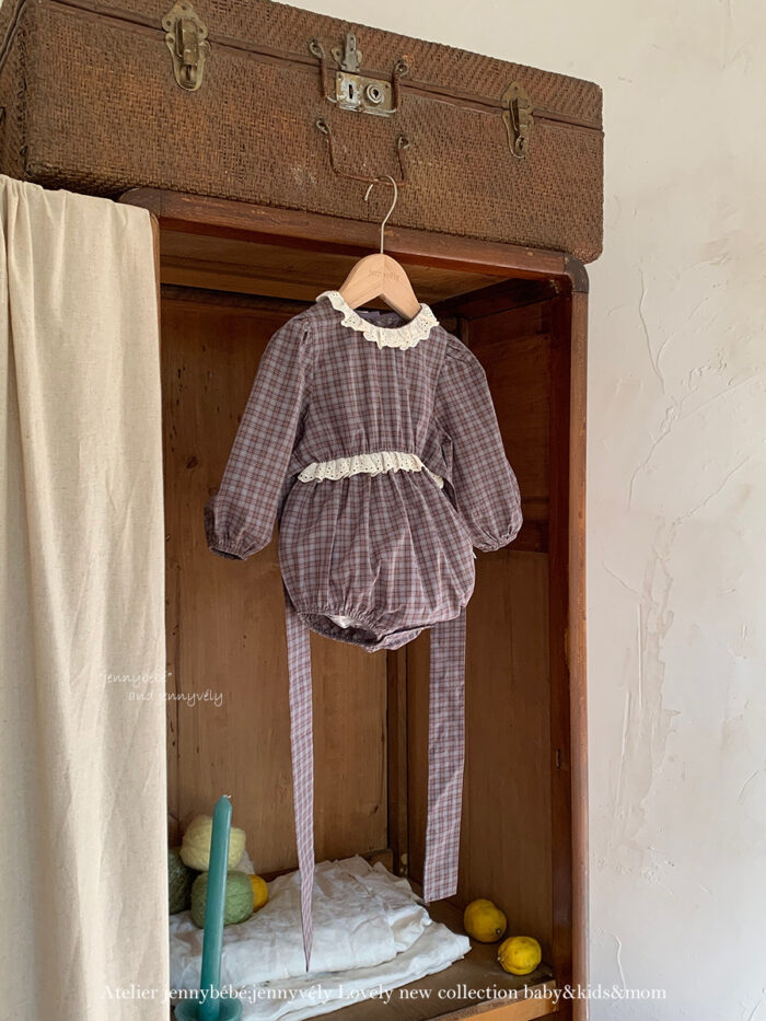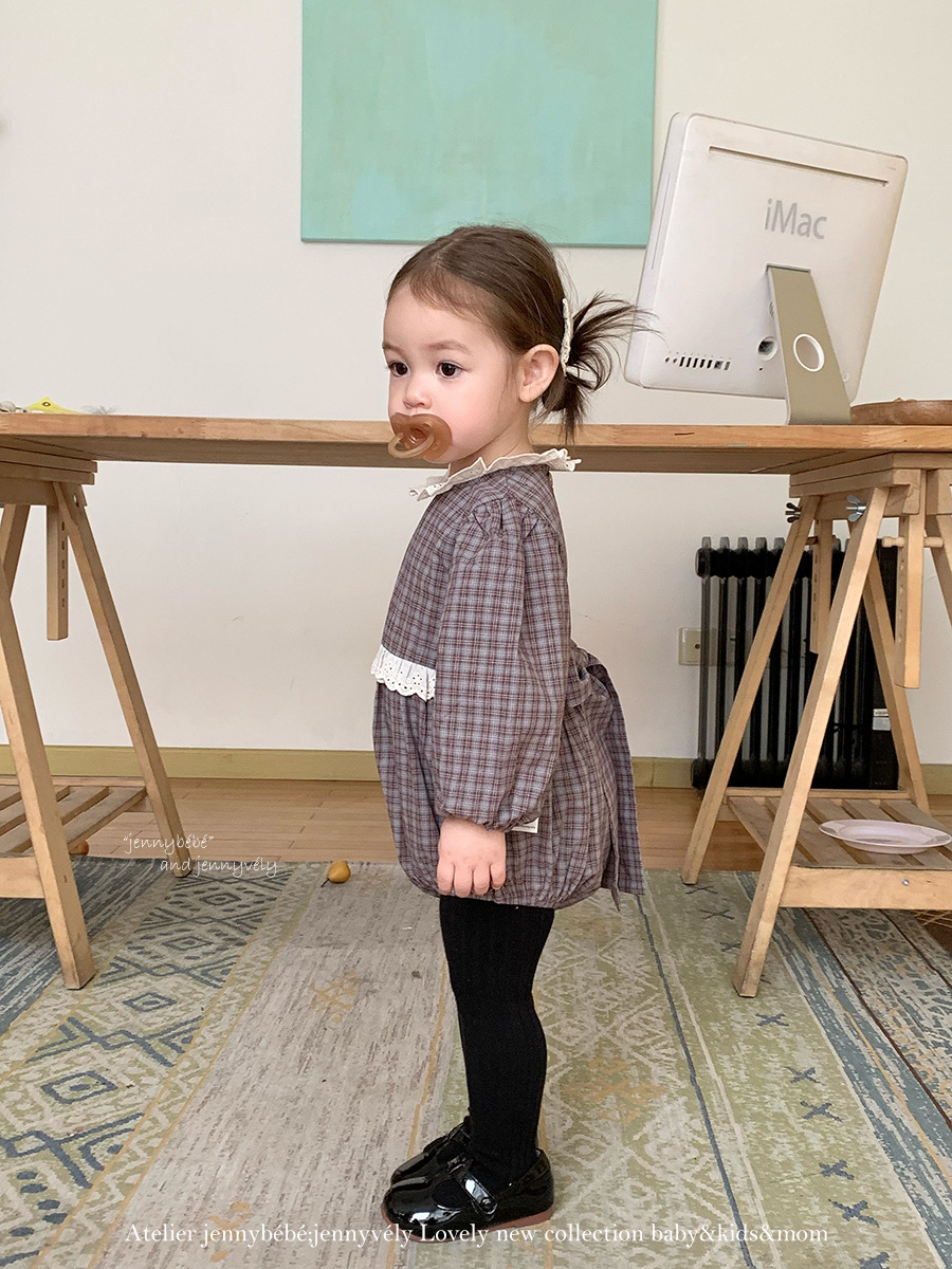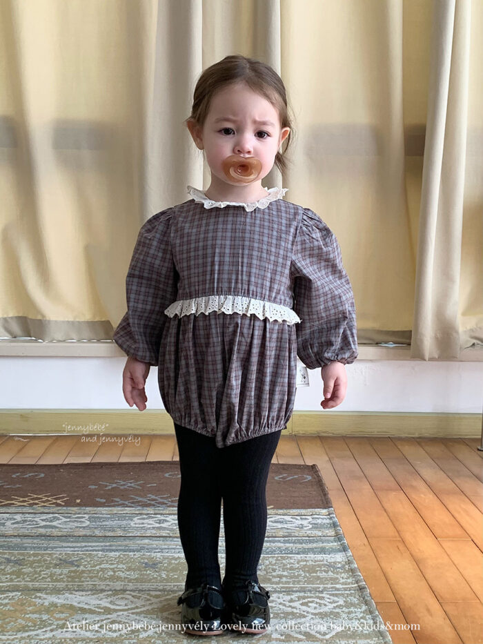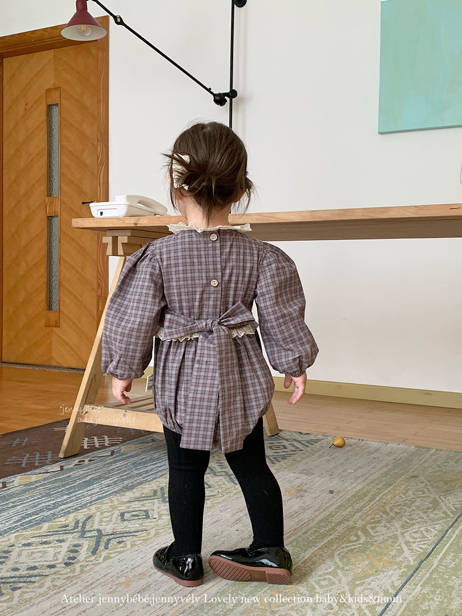 韓版秋季 66~90cm – 格紋蕾絲包屁衣