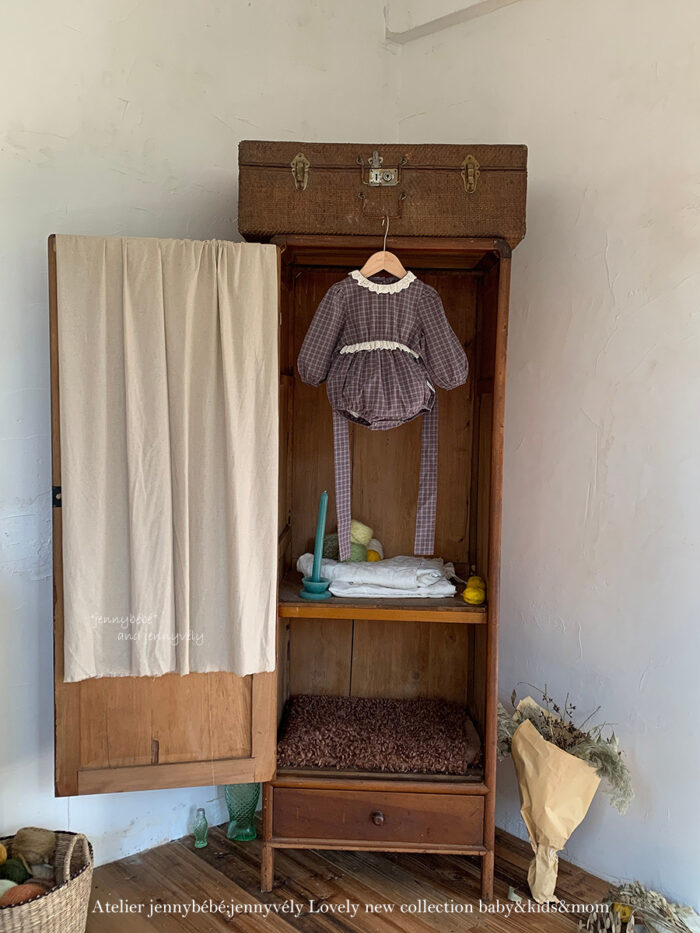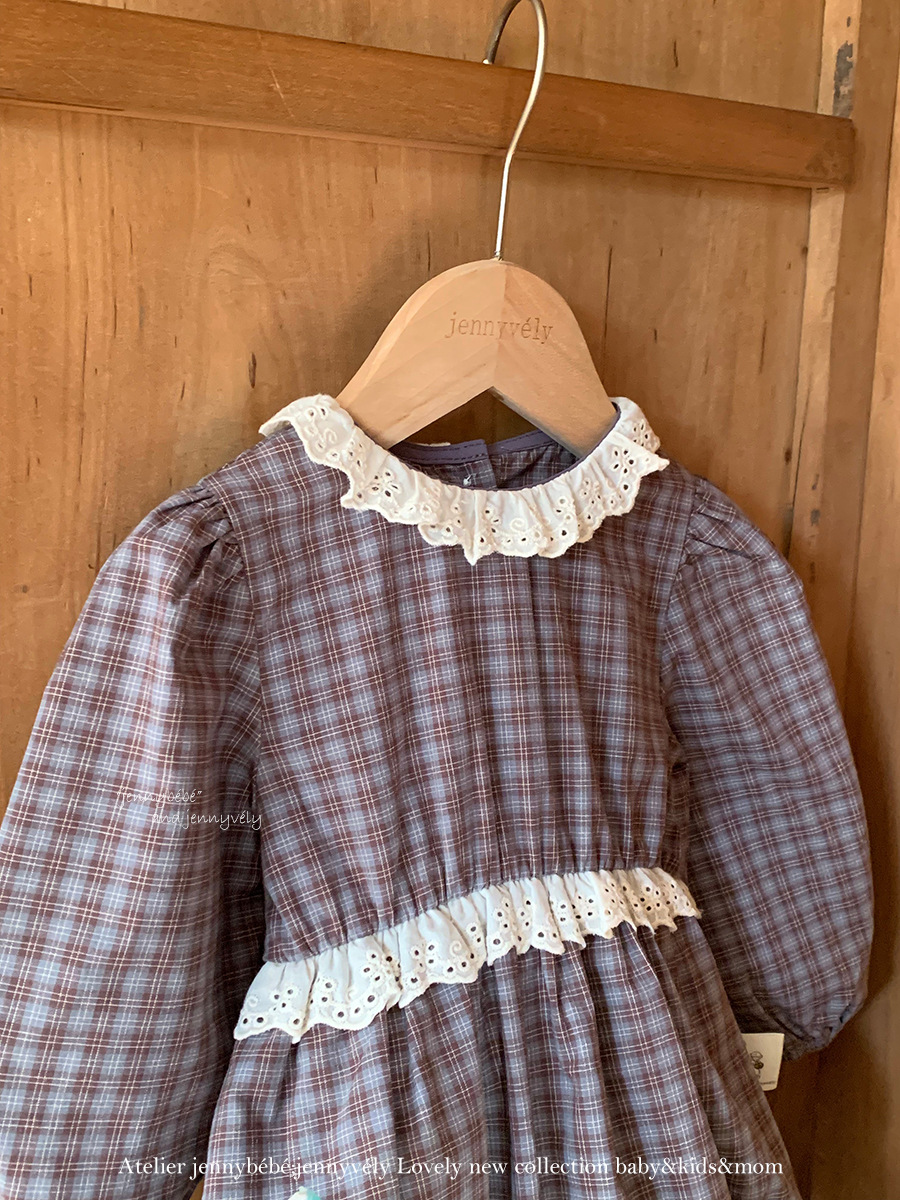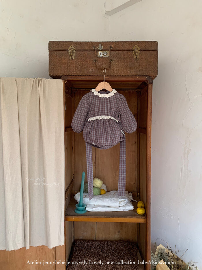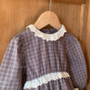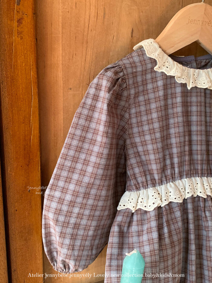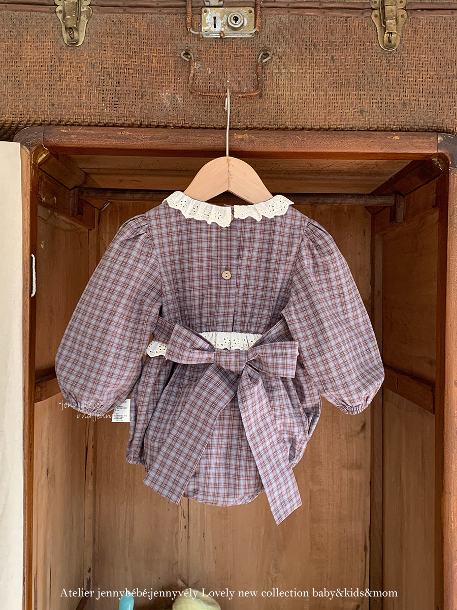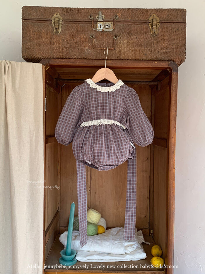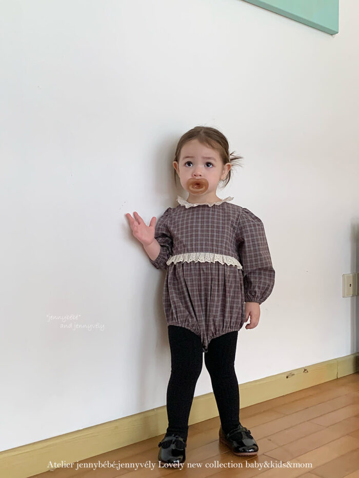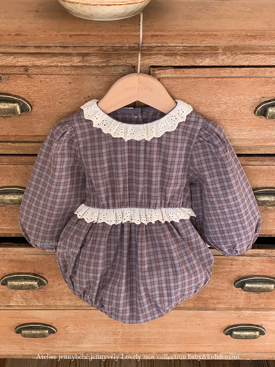 韓版秋季 66~90cm – 格紋蕾絲包屁衣