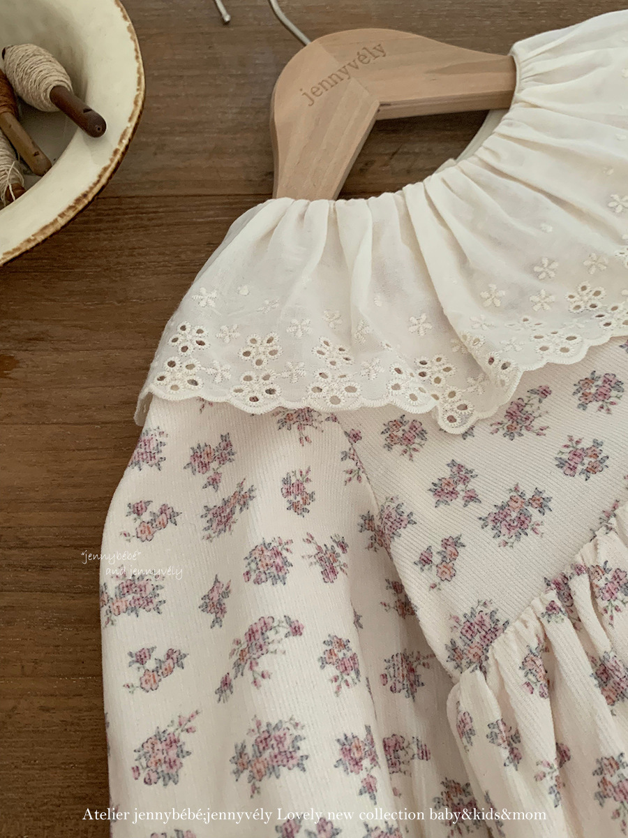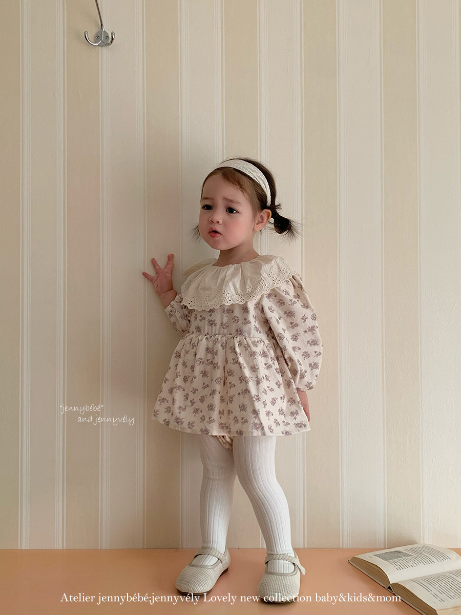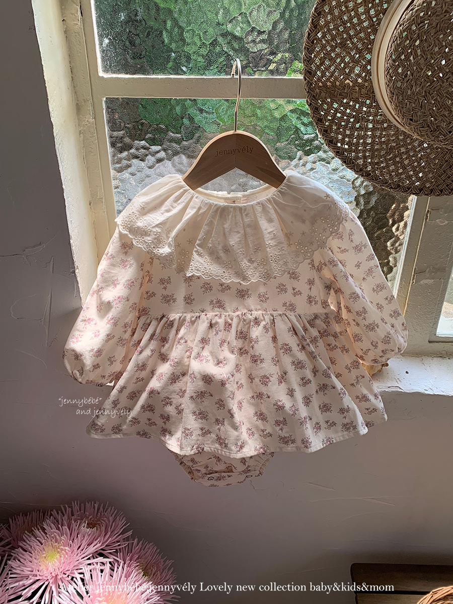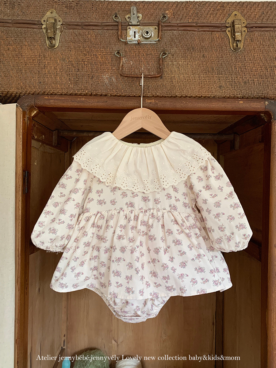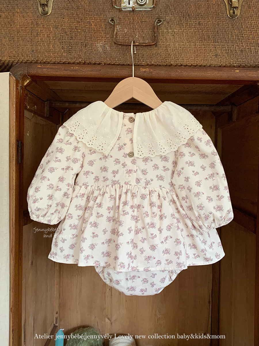 韓版秋季 66~90cm – 碎花大翻領包屁裙