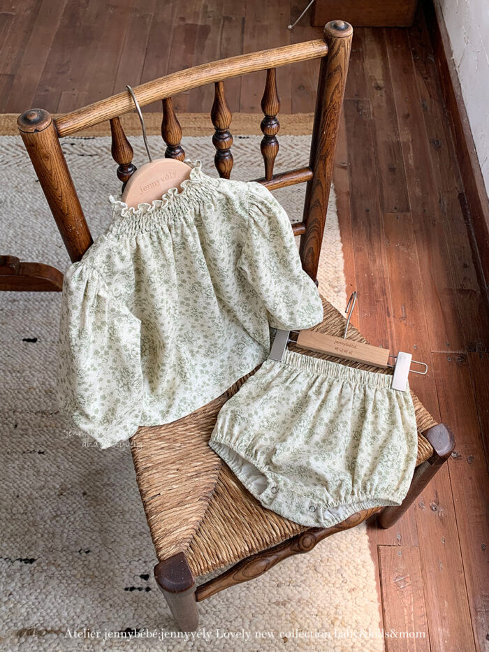 韓版秋季 73~100cm – 森林系小碎花套裝 (上衣+下褲)