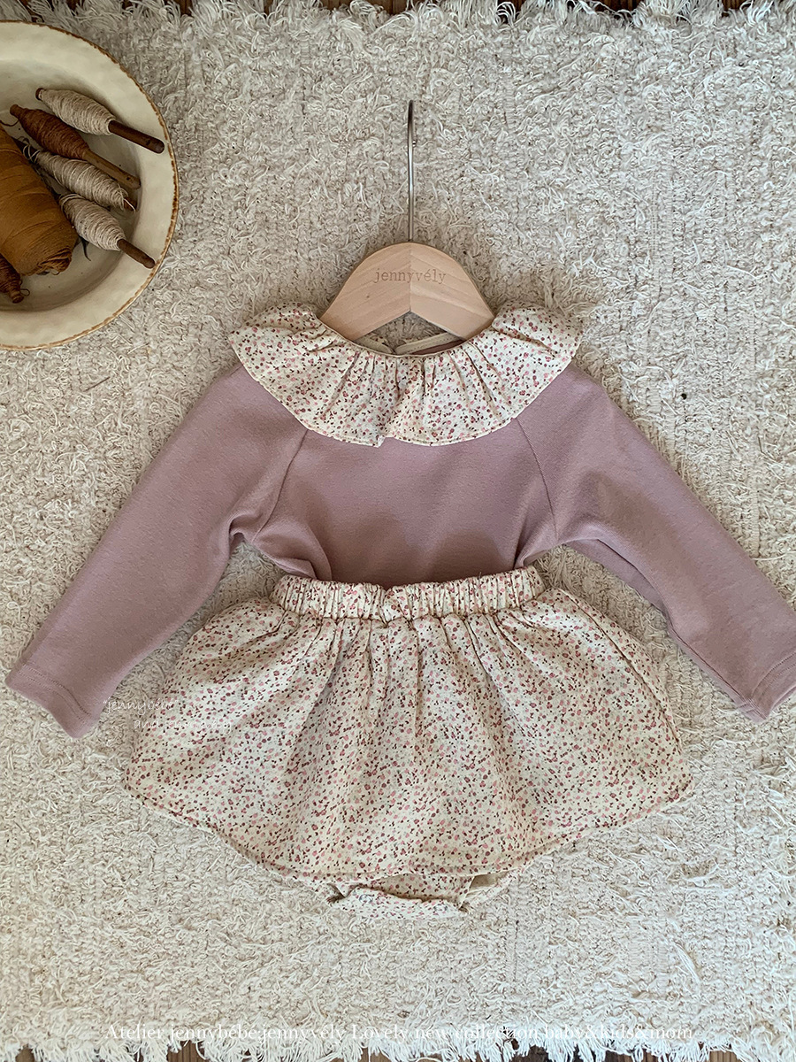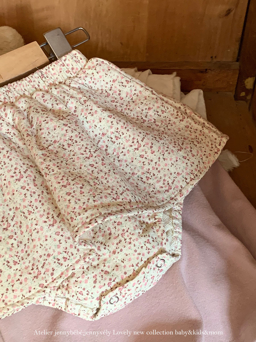 韓版秋季 73~100cm – 碎花粉粉包屁套裝(上衣+下褲)