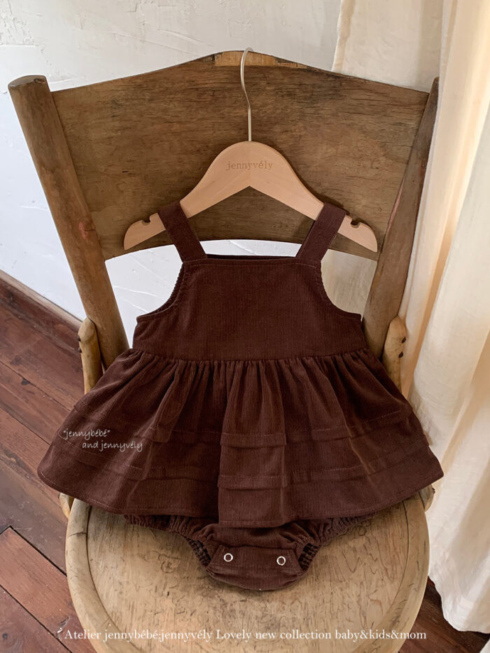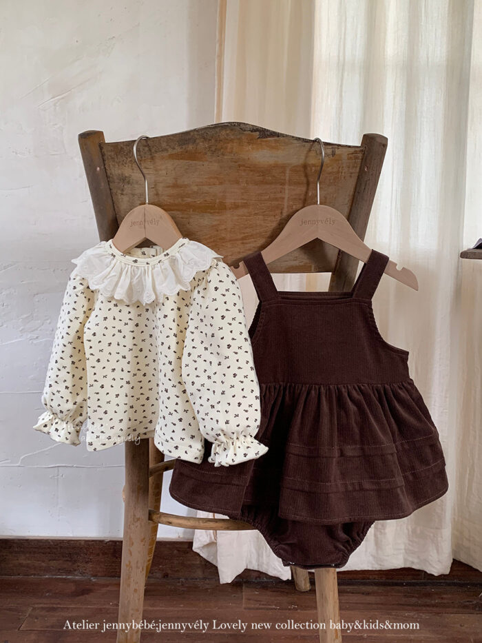 韓版秋季 73~100cm – 蕾絲碎花上衣 / 燈心絨吊帶包屁裙