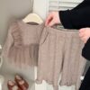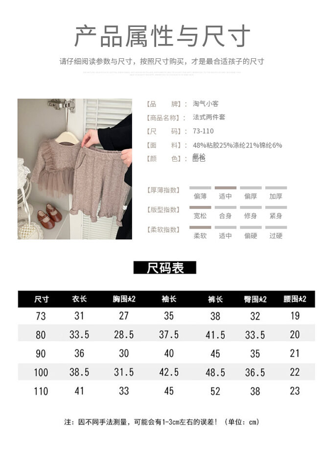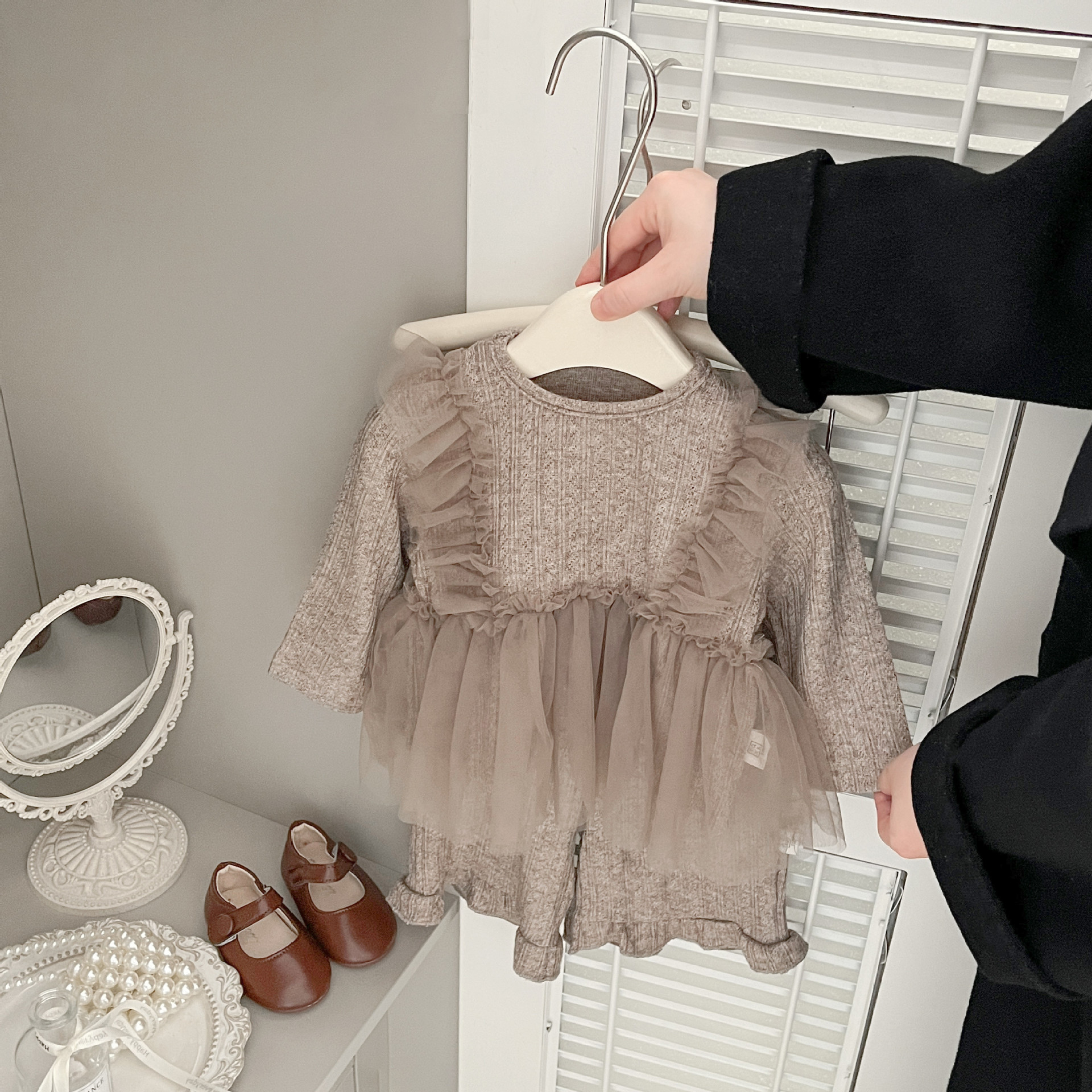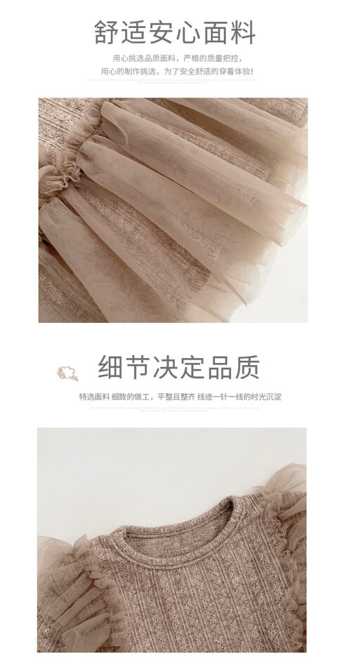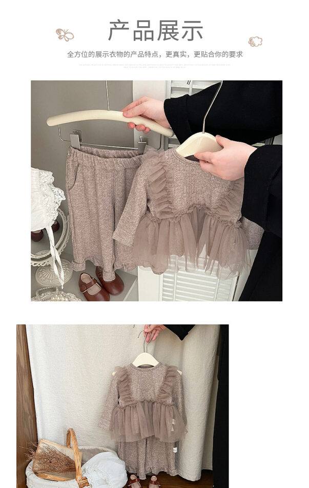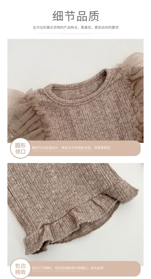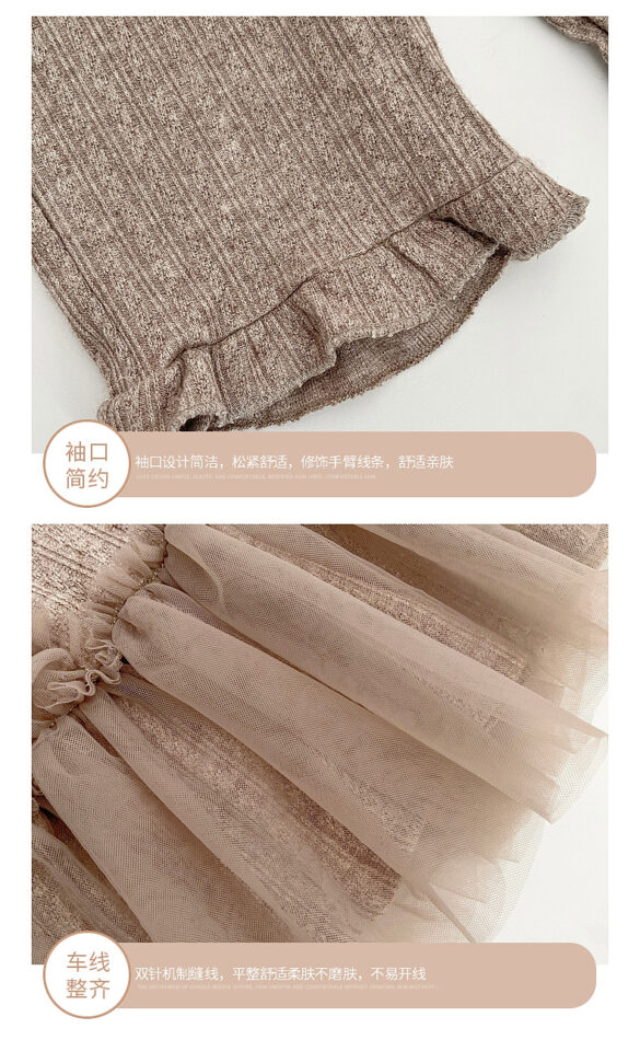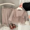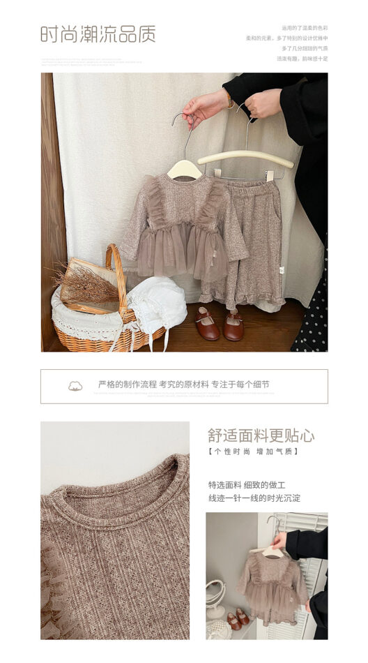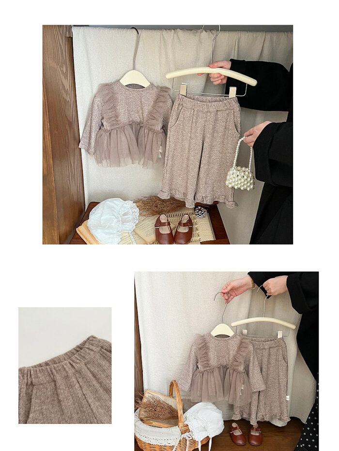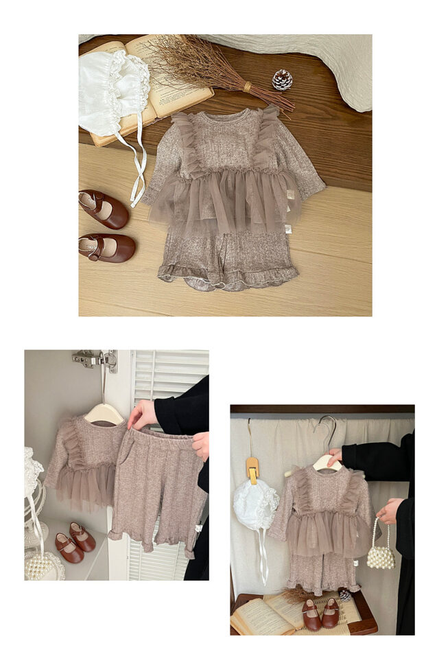 韓版秋季 73~110cm – 法式網紗拼接套裝(上衣+下褲)