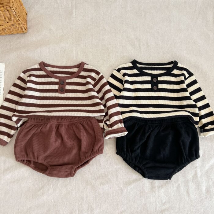 韓版秋季66~100cm – 橫條套裝(上衣+下褲) / 二色