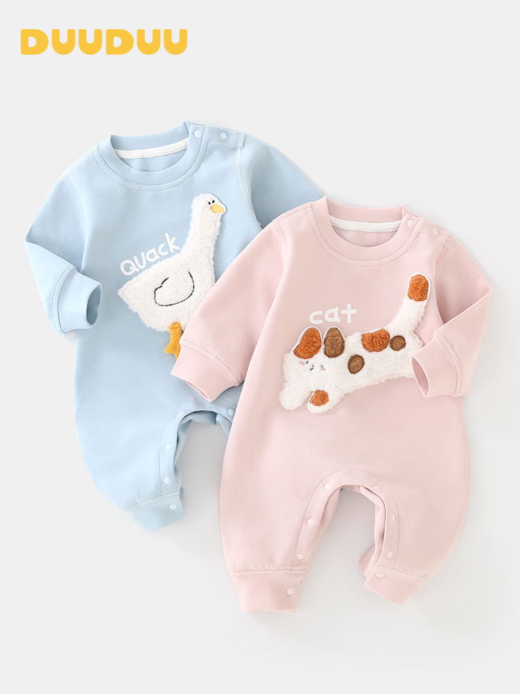 韓版秋季66~100cm – 鴨鴨喵咪連身衣 / 二色