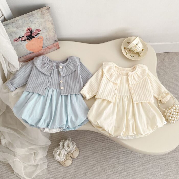 韓版秋季66~90cm – 可愛花苞包屁裙+外套 / 二色