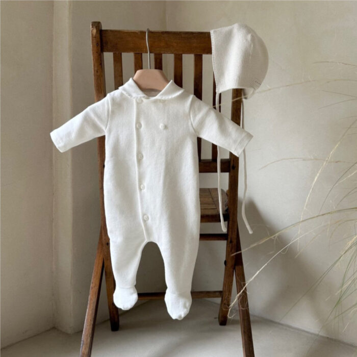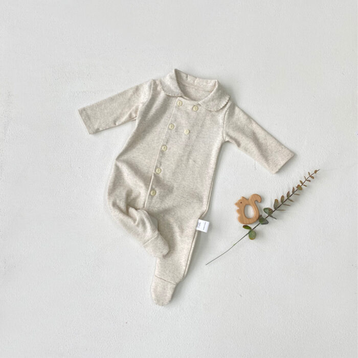 韓版秋季66~90cm – 排釦小圓領包腳連身衣 / 三色