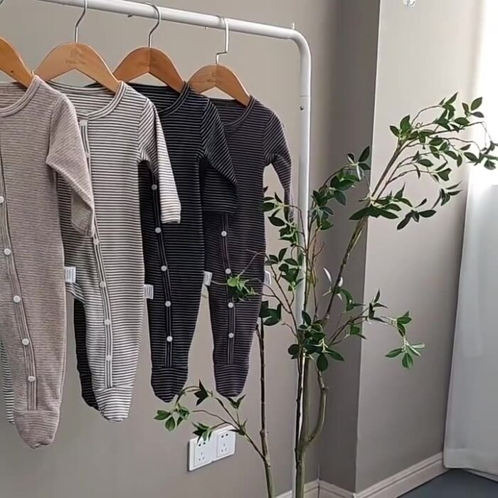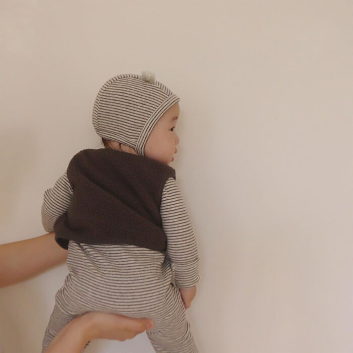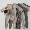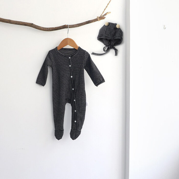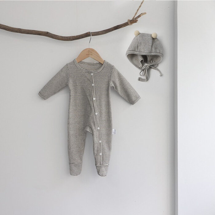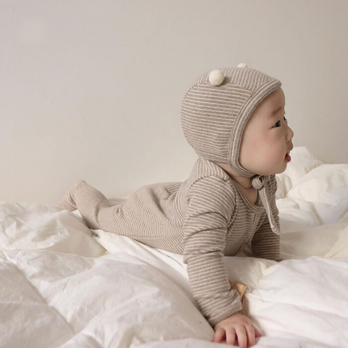 韓版秋季66~90cm – 橫條包腳連身衣+帽子 / 四色