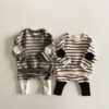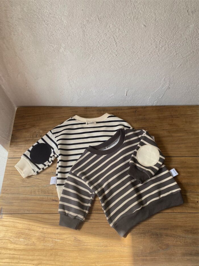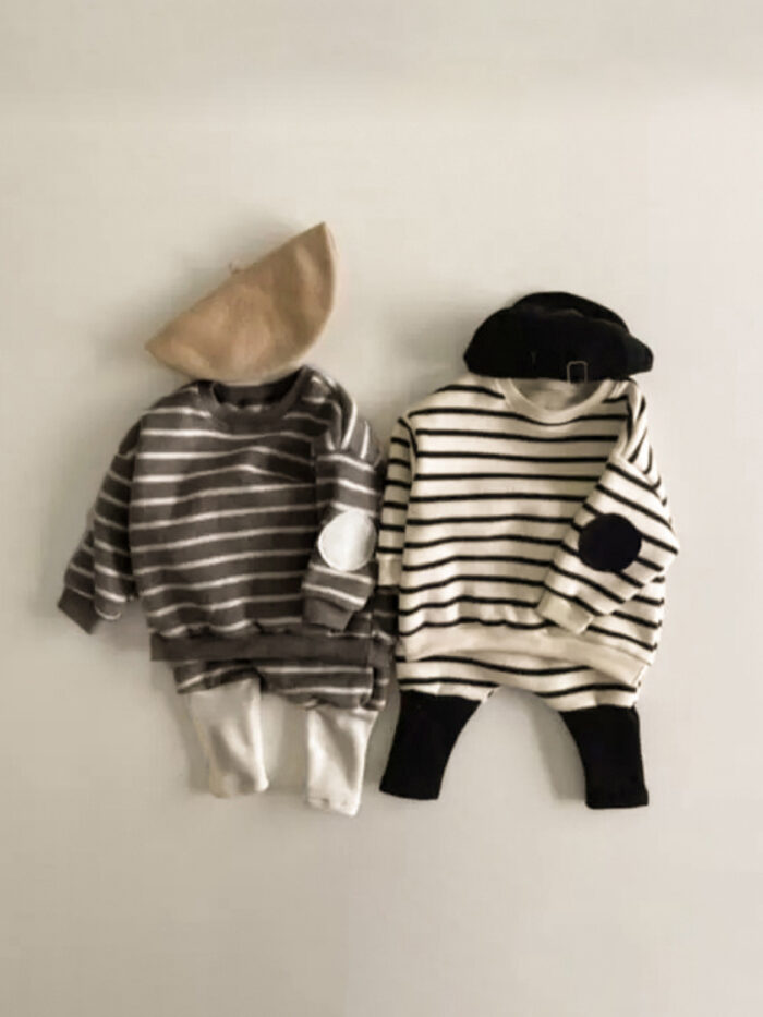 韓版秋季66~90cm – 橫條拚塊套裝(上衣+下褲) / 二色