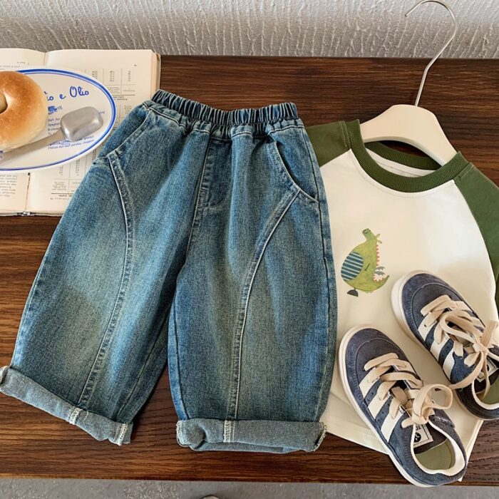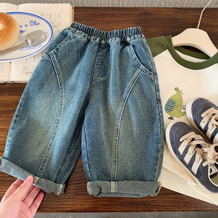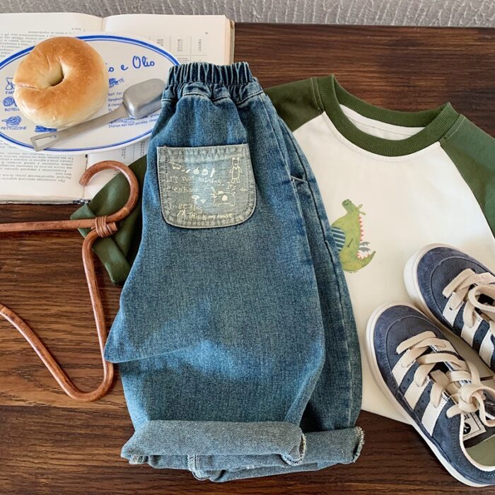 韓版秋季80~130 - 口袋印花牛仔褲 數量