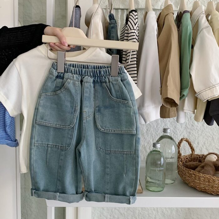 韓版秋季80~130 – 寬鬆直筒休閒牛仔褲