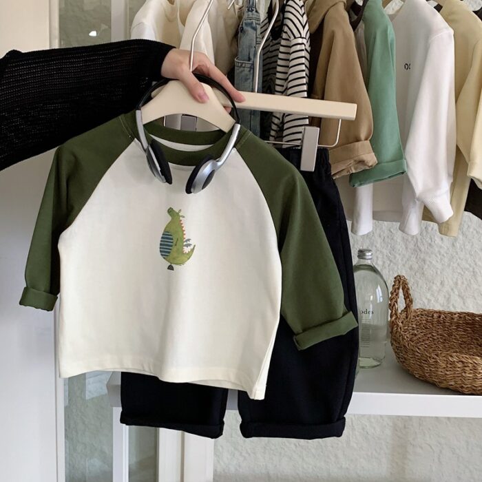 韓版秋季80~130 – 小怪獸拚色上衣