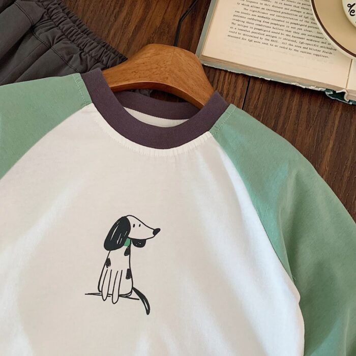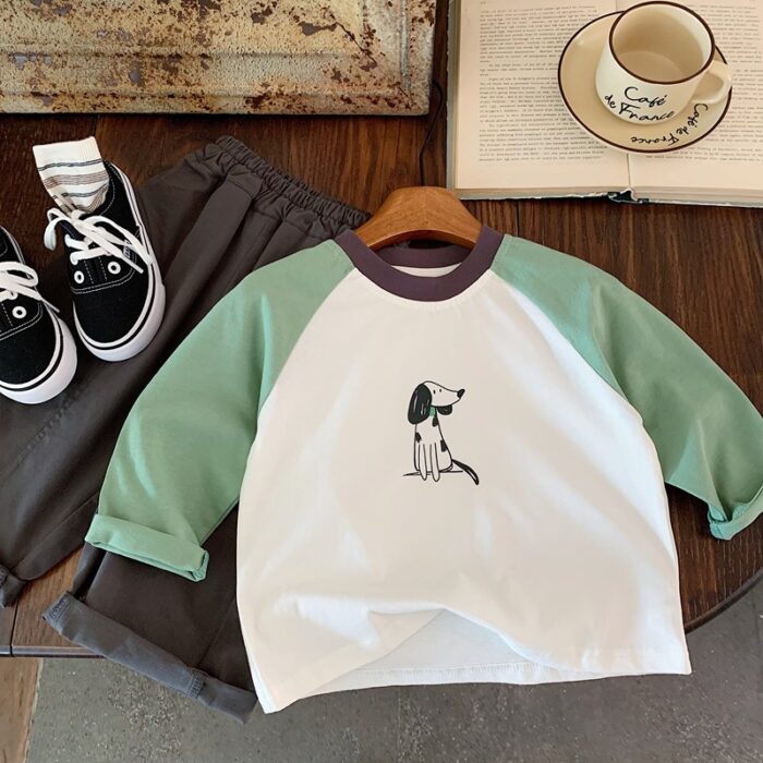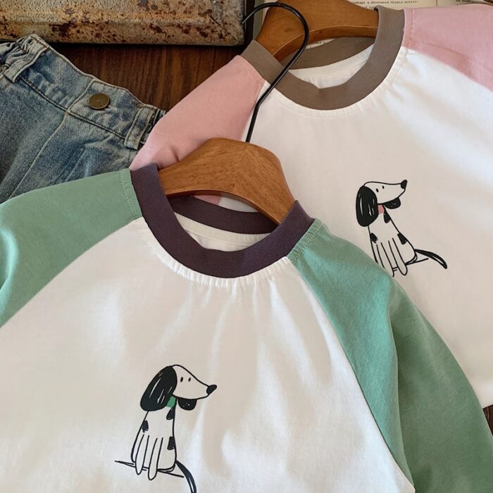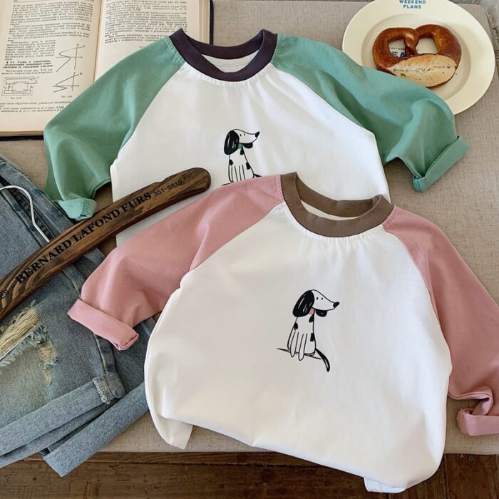 韓版秋季80~130 – 狗狗拚色上衣 / 二色