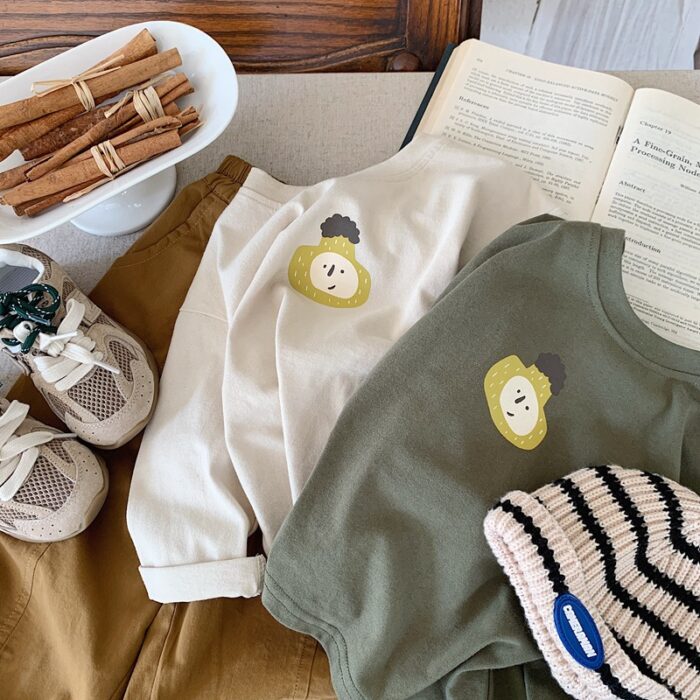 韓版秋季80~130 – 百搭蔬菜印花上衣 / 二色