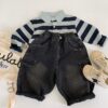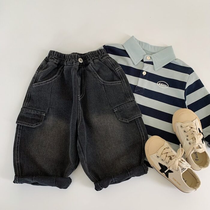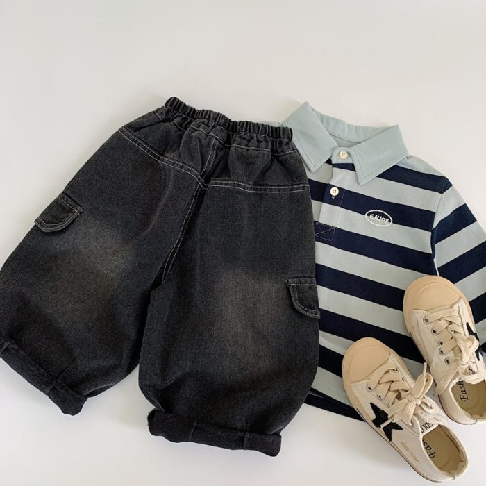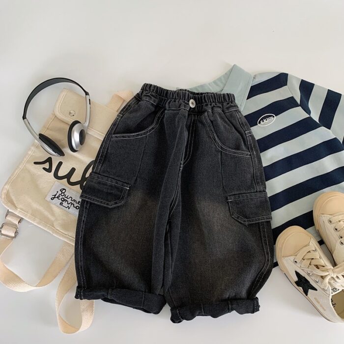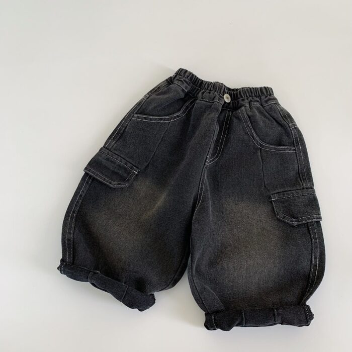 韓版秋季80~130 – 黑色口袋牛仔褲
