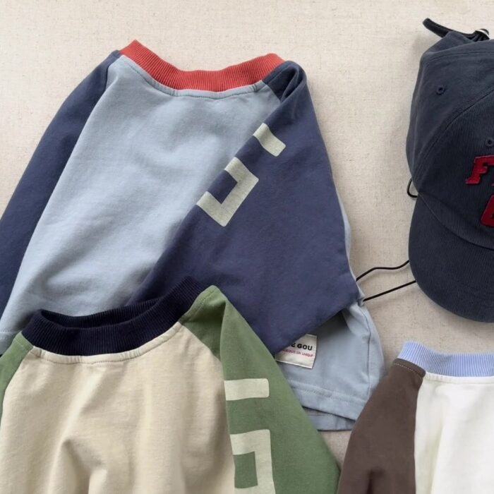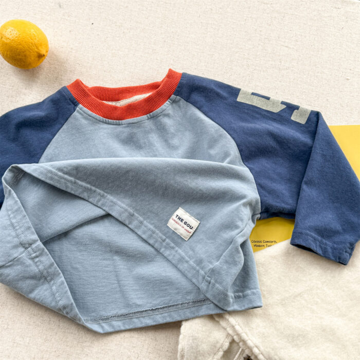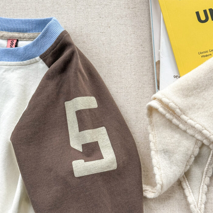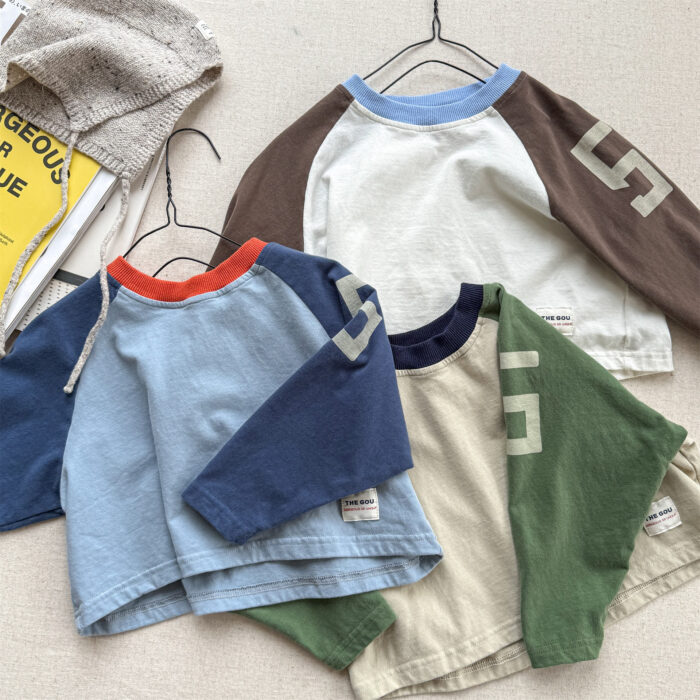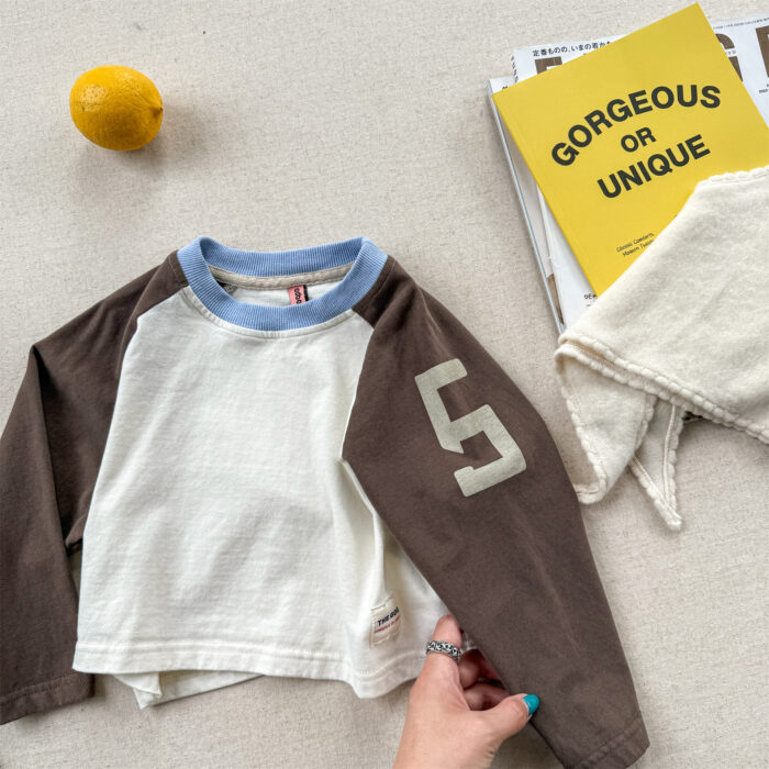 韓版秋季80~130cm – 拚色數字上衣 / 三色