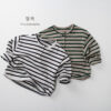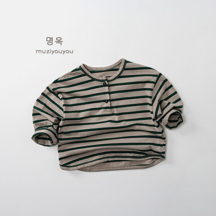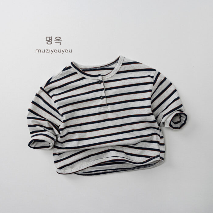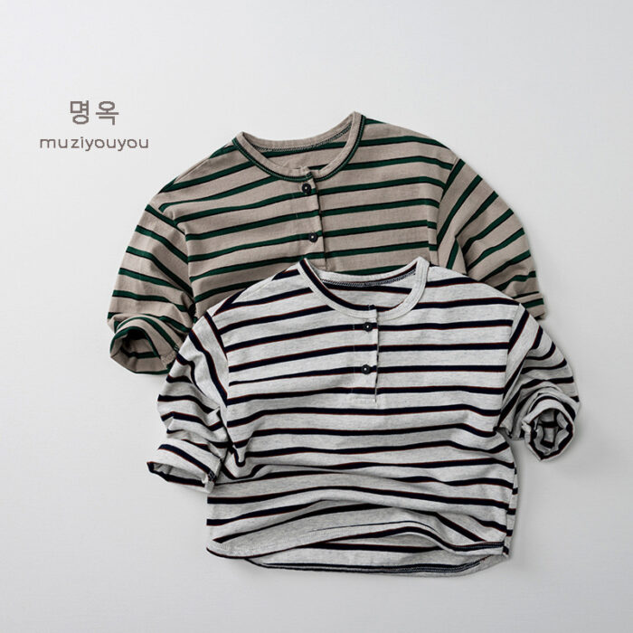 韓版秋季80~130cm – 橫條兩釦上衣 / 二色