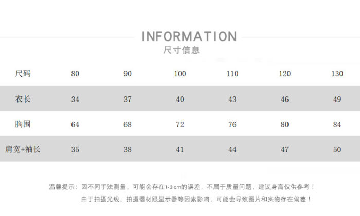 韓版童裝尺寸