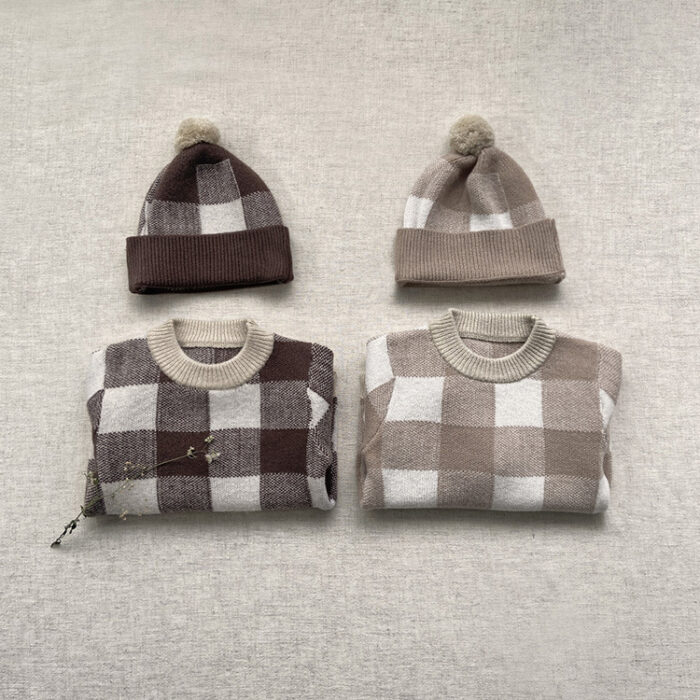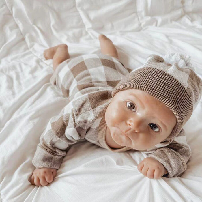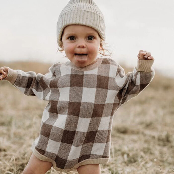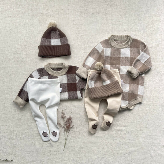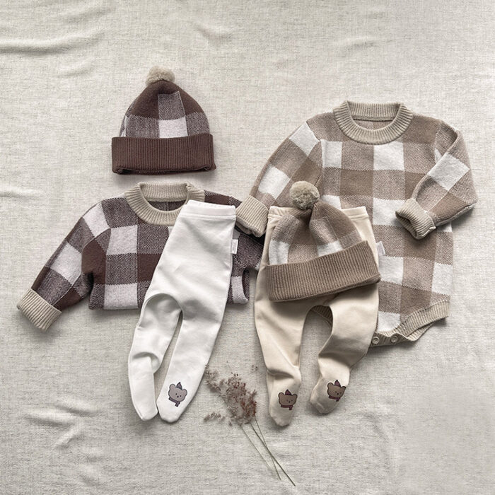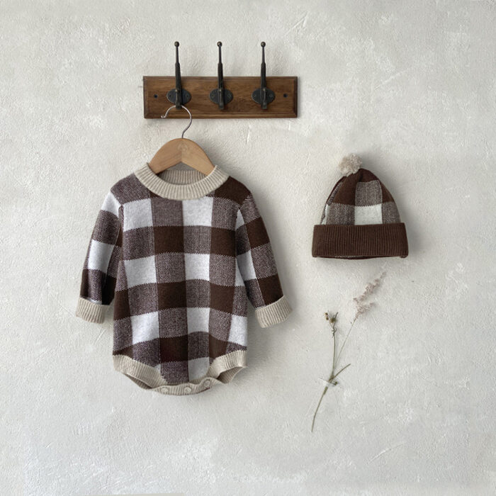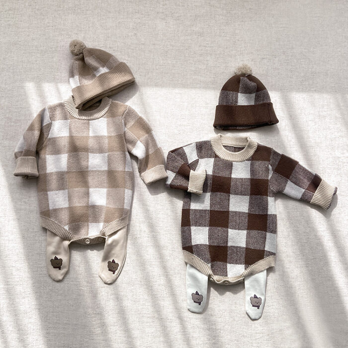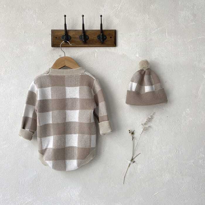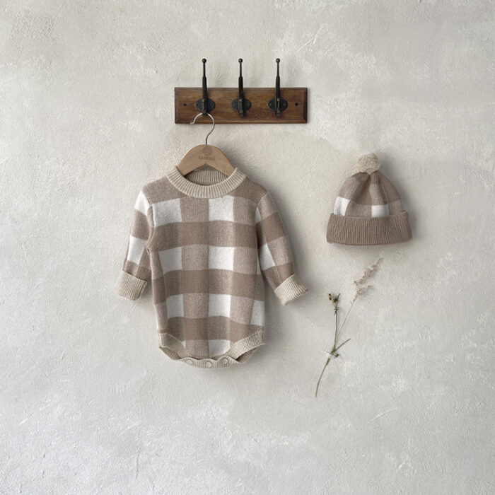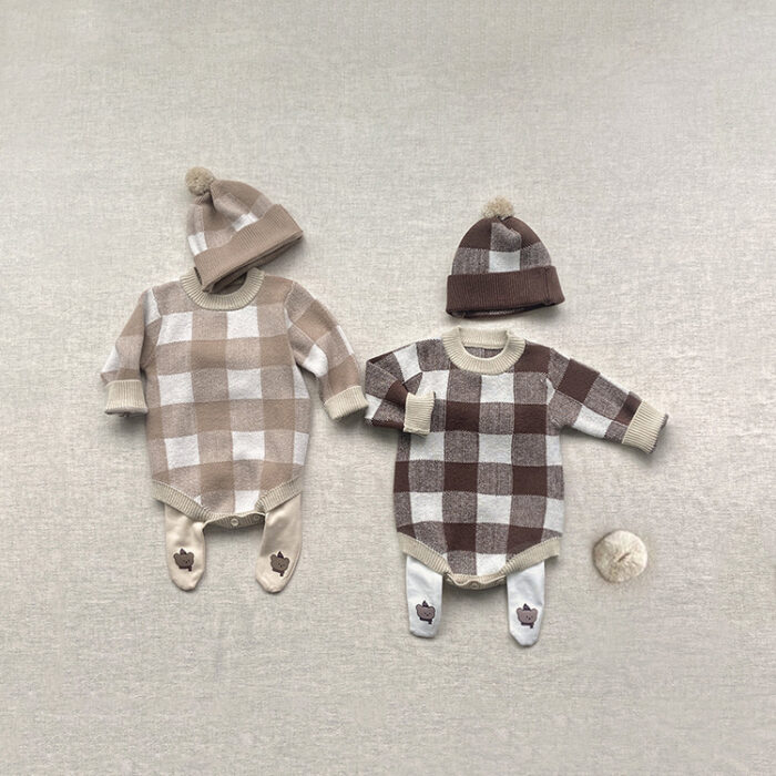 韓版 66~90 – 方格包屁衣+帽子 / 二色