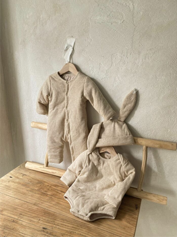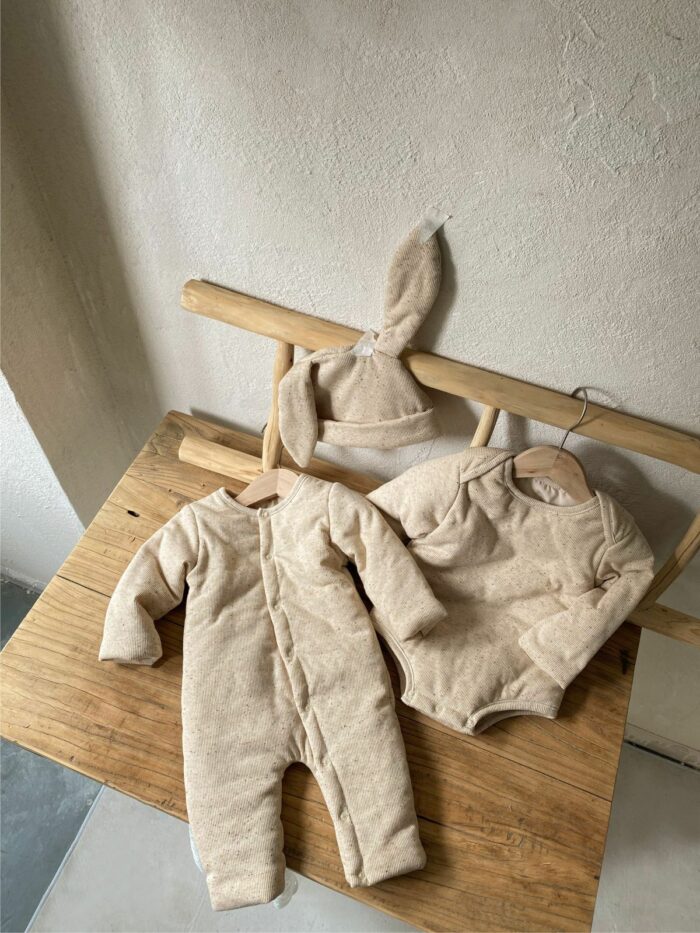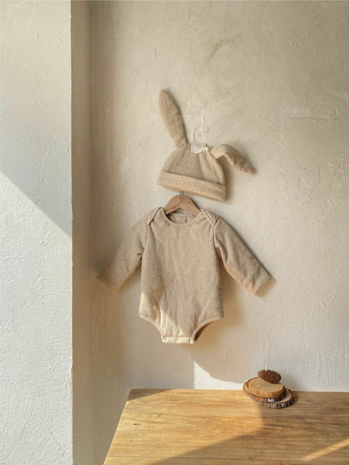 韓版 66~90 – 燕麥彩棉加厚包屁衣+帽子 / 兩款